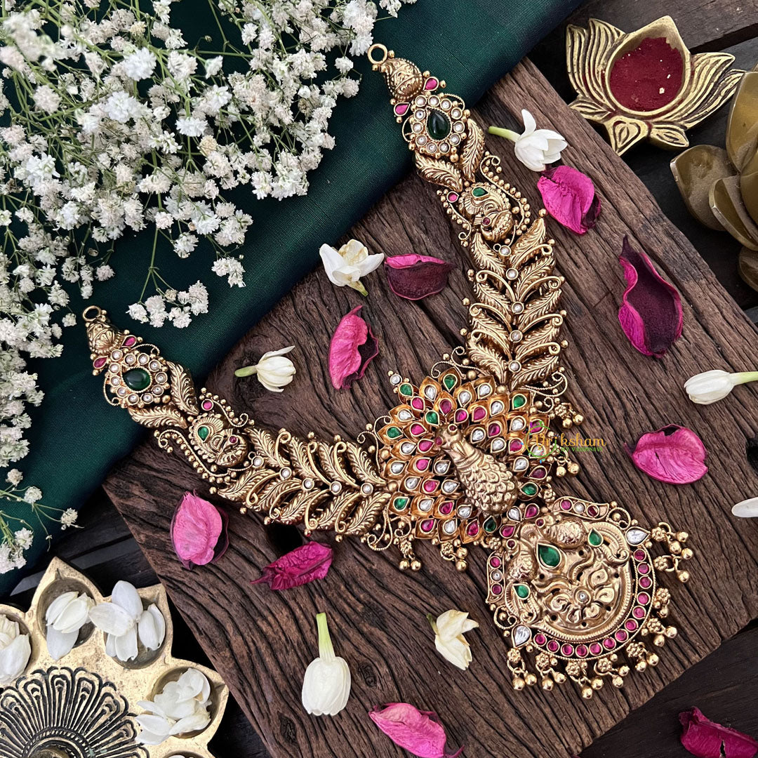 Elevate your elegance with the Vriksham Peacock Floral 1 gm Gold Short Neckpiece. Crafted with delicate artistry, this lightweight piece features intricate peacock and floral motifs that add a refined charm to any ensemble. Perfect for both traditional and contemporary occasions, it offers a subtle yet sophisticated statement of style.