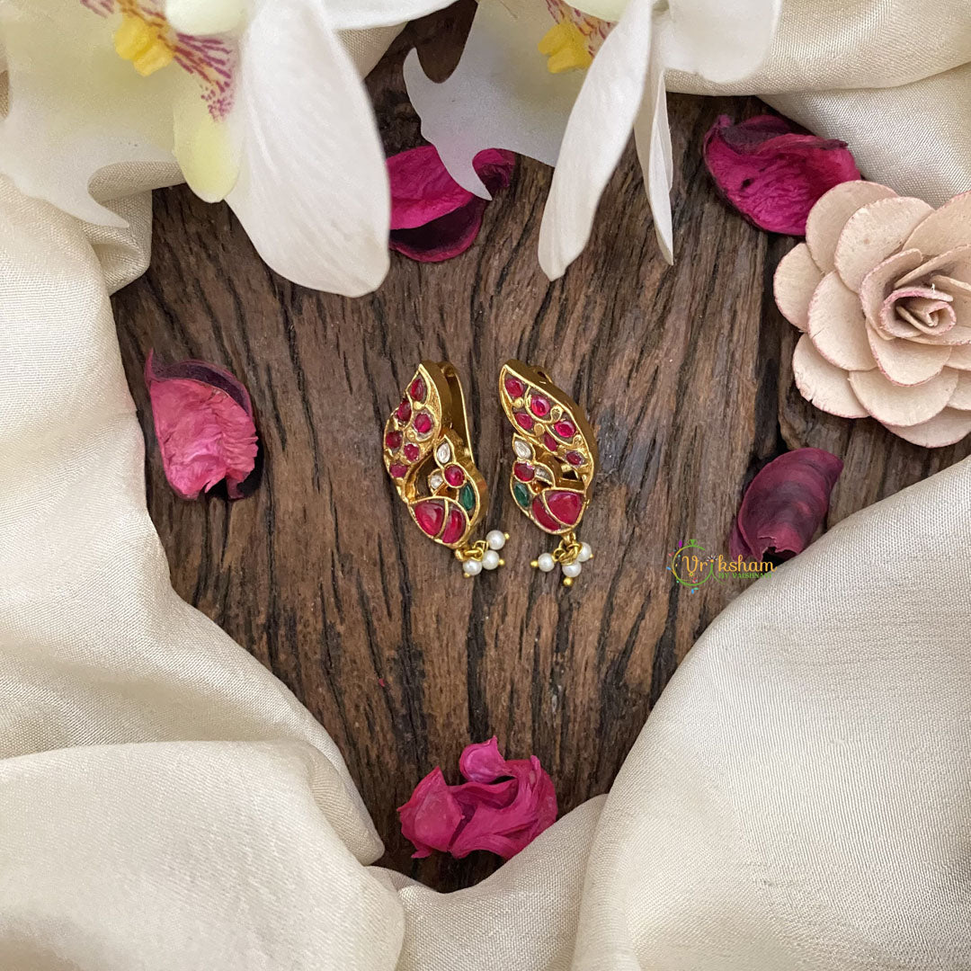 Embrace the bold elegance of the Vriksham Peacock Maharashtrian Style Press Bugadi-Pearl. Handcrafted with intricate details, the iconic design boasts a luxurious touch that will elevate any ensemble. Add a touch of Maharashtrian culture to your style with this statement piece.