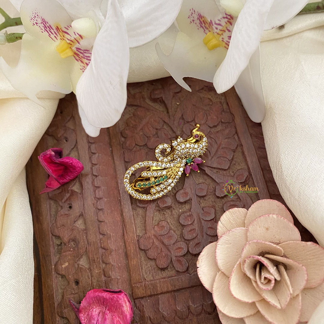 Elevate your saree game with our Vriksham Peacock Style AD Stone Saree Pin-Saree Brooch. Each intricately designed pin features a stunning peacock adorned with sparkling AD stones. Add a touch of luxury and elegance to your ensemble with this exclusive accessory.