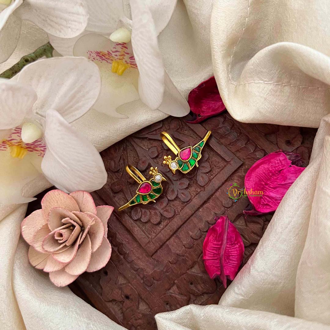 Celebrate timeless majesty with this Peacock Style Kundan Jadau Bugadi, a breathtaking composition of heritage craftsmanship in white, red, and green. The resplendent peacock design, rendered through meticulous Kundan work, captures the essence of regal elegance and cultural symbolism. The vibrant color palette—pristine white complemented by rich red and verdant green—creates a striking visual narrative that commands attention. Each element is precisely positioned to showcase the artisan's mastery, with authentic Jadau techniques ensuring unparalleled durability and brilliance. Perfect for weddings, festivals, and momentous celebrations, this bugadi transcends occasion with its sophisticated allure. An heirloom-worthy accessory that honors tradition while radiating contemporary refinement and timeless prestige.