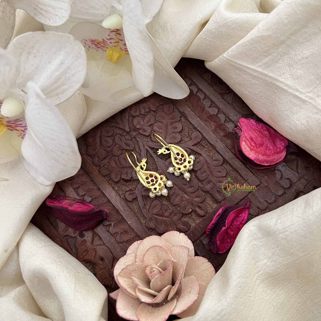Unveil the splendor of this exquisite peacock-themed Bugadi, a celebration of ornamental artistry and cultural heritage. Featuring radiant pearl detailing arranged in a captivating peacock design, this red and green masterpiece commands attention with its regal aesthetic. Each element is thoughtfully crafted to evoke the grandeur of traditional Indian elegance while maintaining contemporary sophistication. Perfect for weddings, festivals, and prestigious gatherings, this distinguished ensemble elevates any occasion with its mesmerizing beauty and impeccable craftsmanship.
