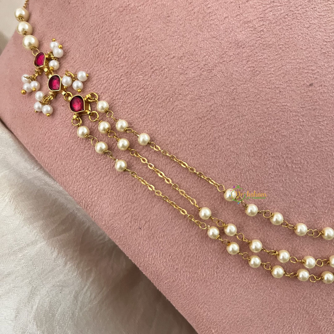 Elevate your elegance with the Vriksham Pearl Layer Style Kundan Jadau Short Neckpiece in rich red. This exquisite piece features intricate kundan craftsmanship paired with delicate pearl layers, creating a timeless accessory that complements both traditional and contemporary attire. Perfect for special occasions, it adds a refined touch of luxury and sophistication to your ensemble.