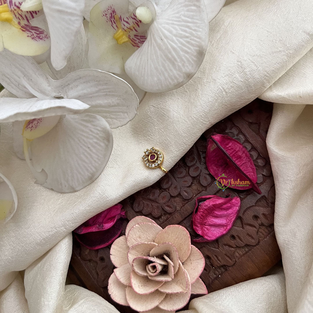 Elevate your elegance with the Vriksham Petite Beauty Nose Pin, featuring a refined blend of red, white gemstones accented by delicate pearls. This press-on design offers effortless wear while adding a subtle yet striking touch to your look, perfect for those who appreciate understated sophistication.