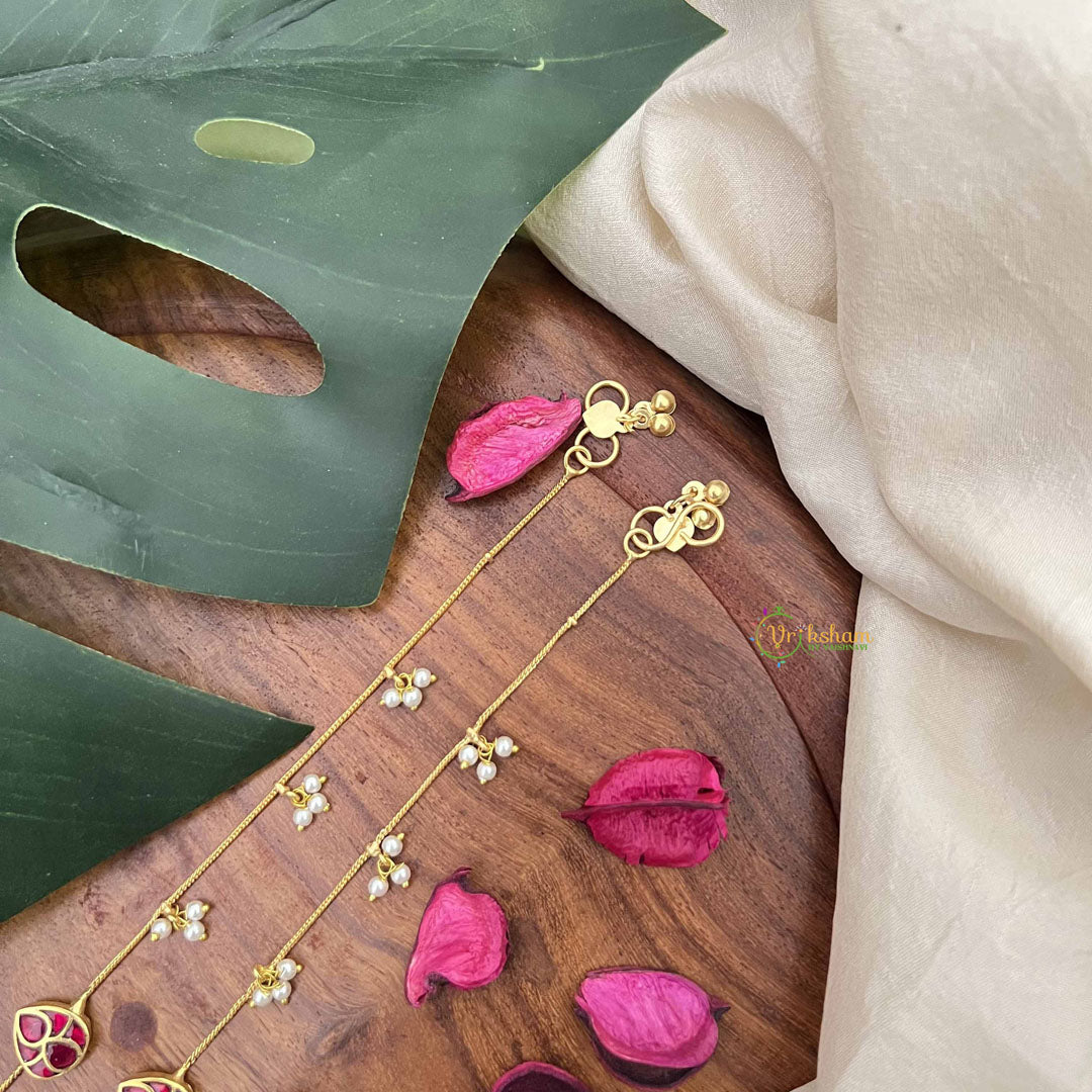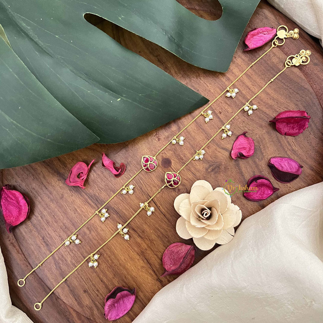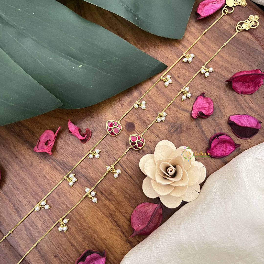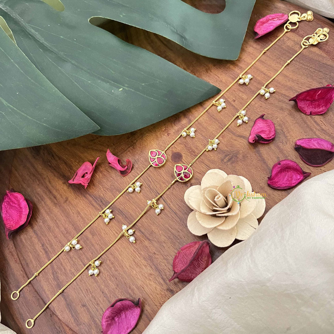 Vriksham Precious Jadau Kundan Pendant Anklets-Red-Tilak-Pearls-J3976