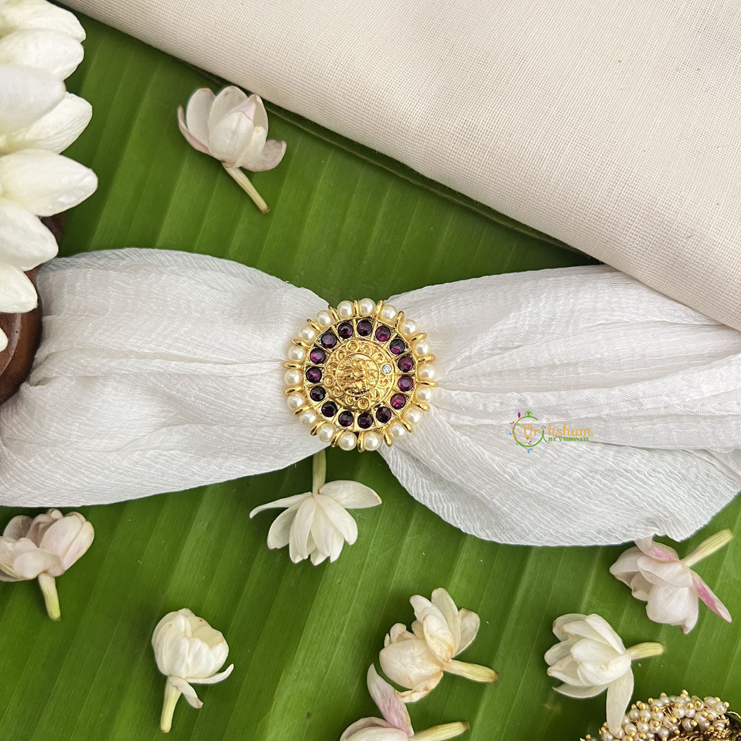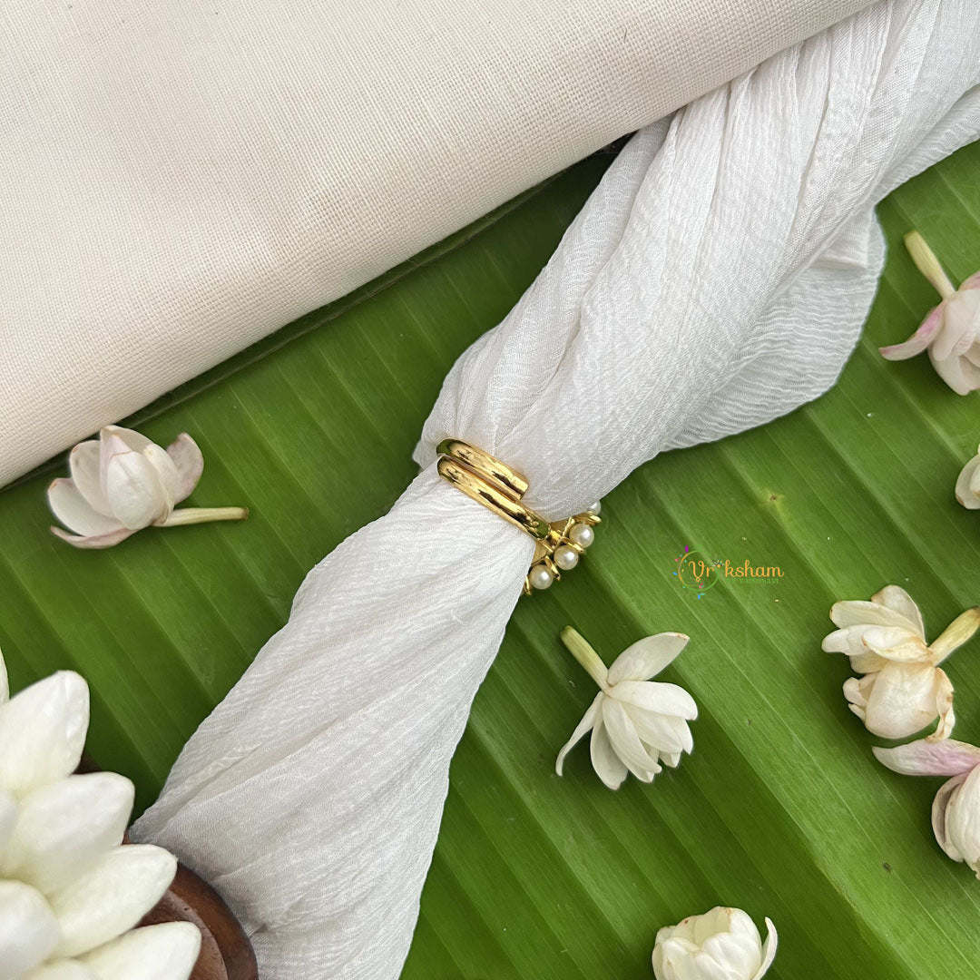 The Vriksham Precious Kemp Finger Ring in White and Red, accented with pearls, exemplifies refined elegance and expert craftsmanship. Its vibrant hues paired with delicate pearls create a striking yet sophisticated statement piece, perfect for enhancing your ensemble with a touch of timeless charm. Ideal for special occasions or elevating everyday style.