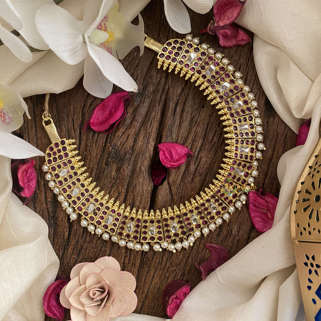 Indulge in the exquisite elegance of our Vriksham Precious Kemp High Neck Choker. Adorned with lustrous pearls and a striking white hue, this luxurious piece radiates sophistication and exclusivity. Elevate any outfit with its intricate design and impeccable craftsmanship. Perfect for those seeking a touch of opulence.