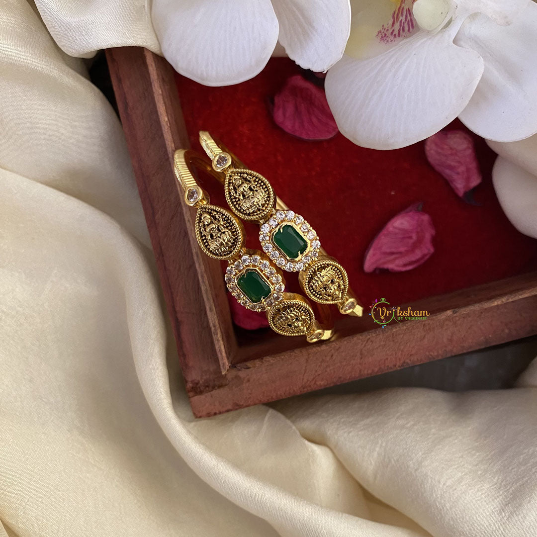 Embody elegance and grace with Vriksham's Precious Lakshmi Kada Bangles. The intricate design pays homage to the goddess of wealth and prosperity, while the vibrant red hue adds a touch of opulence. Adorn yourself with these premium bangles for a truly luxurious experience.