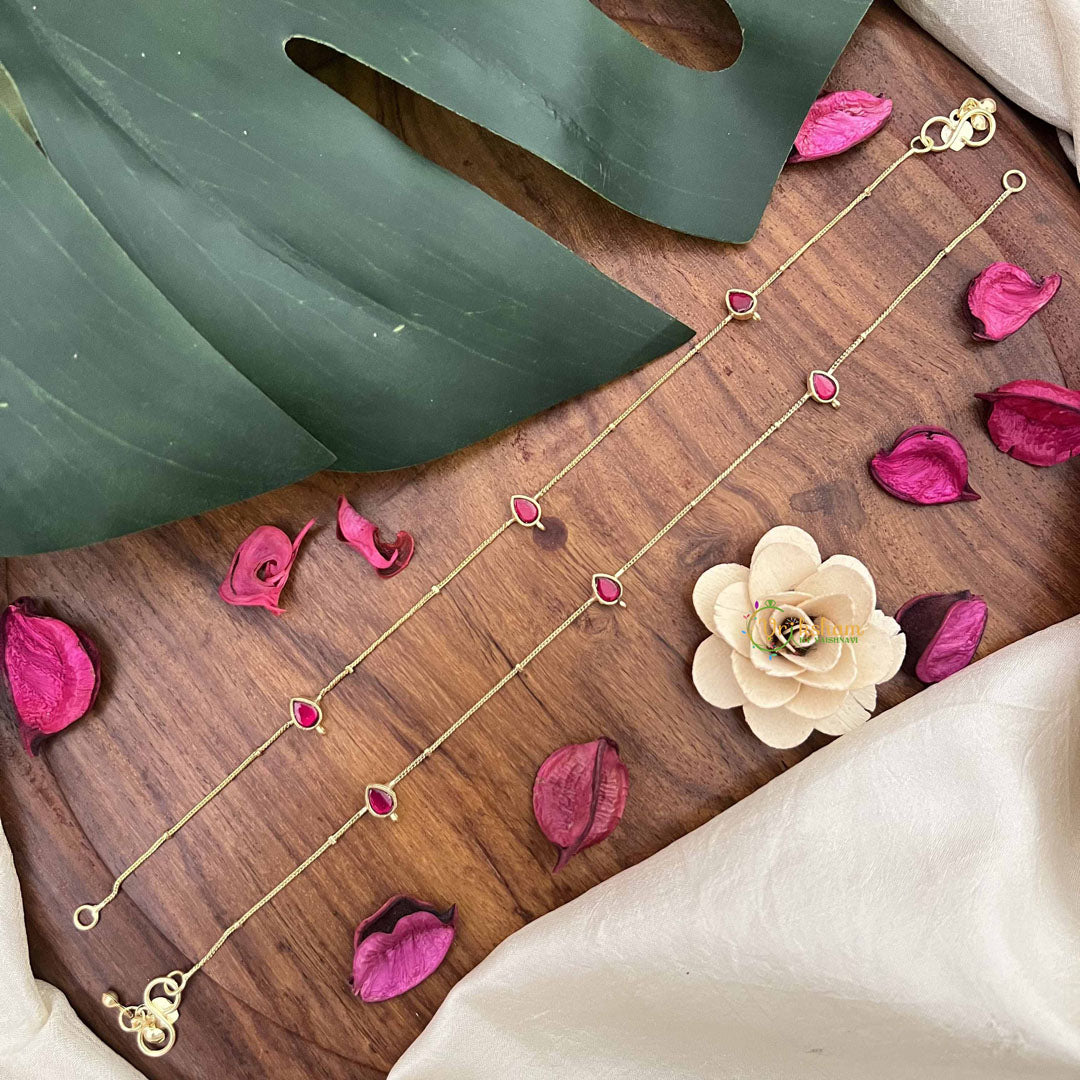 Discover the allure of these Precious Stone Pendant Tear Drop Anklets, where elegant geometry meets refined craftsmanship. The distinctive teardrop silhouette creates a graceful flow that complements the natural contours of the ankle, while precious stones catch and reflect light with mesmerizing brilliance. Each pendant is meticulously designed to balance visual impact with understated sophistication. Perfect for those who appreciate jewelry that transcends ordinary aesthetics, these anklets serve as a subtle yet striking accessory for both special occasions and curated everyday wear. A timeless investment piece that celebrates artistry and enduring elegance.