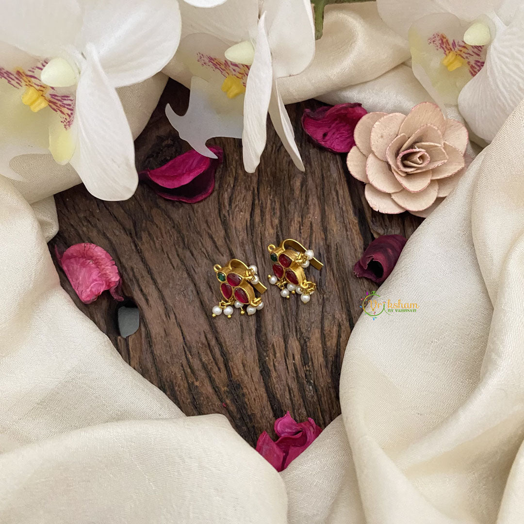 Introducing Vriksham Premium 3 Petal Maharashtrian Style Press Bugadi-Red Green. This exquisite piece of jewelry combines traditional craftsmanship with a modern touch. The intricate 3 petal design, inspired by Maharashtrian culture, is accented with bold red and green enamel. A must-have for those seeking luxury and exclusivity.