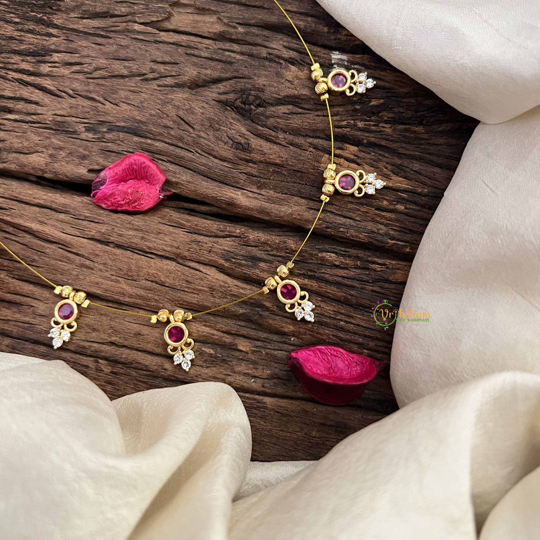 Vriksham Premium 5 Round & Leaf Pendant Invisible Chain-Red-G20612