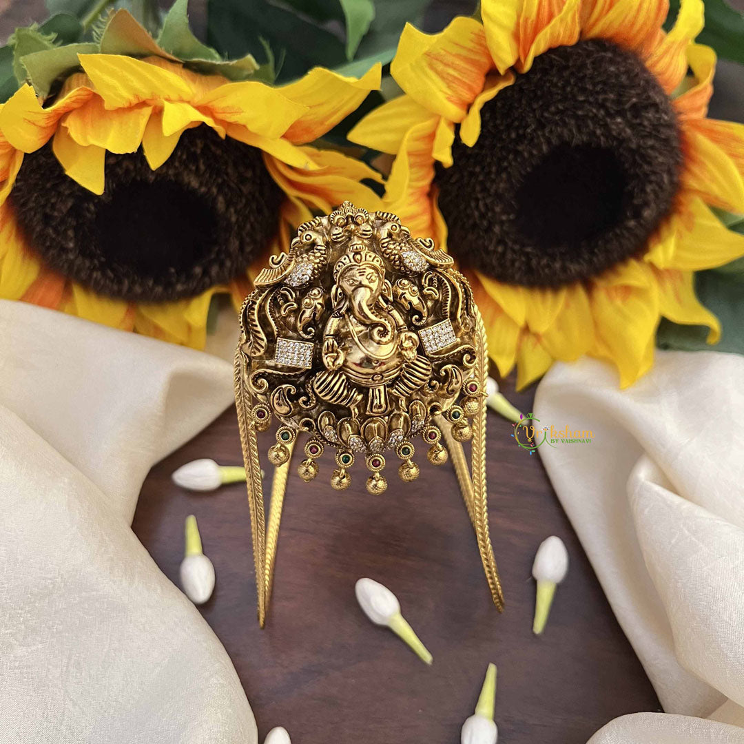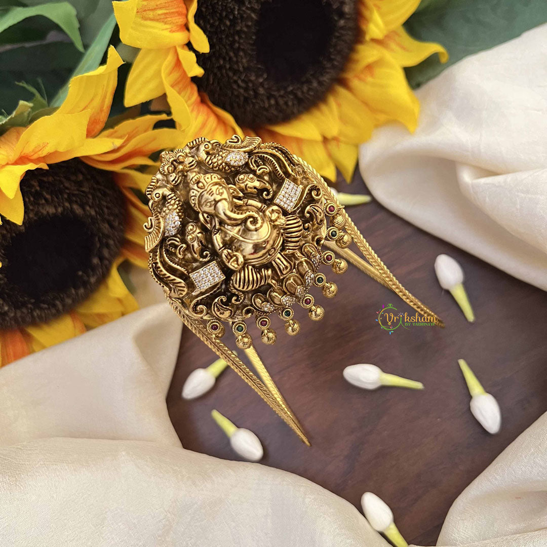 Elevate your spiritual practice with these exquisite Ganesha Vangi Armlets, crafted from premium AD stone and adorned with lustrous gold beads. Each piece celebrates the divine energy of Lord Ganesha, the remover of obstacles, while the elegant gold accents add a touch of refined sophistication to your wrist. Perfect for daily wear or special occasions, these armlets combine traditional spiritual significance with contemporary elegance. The durable AD stone ensures lasting beauty, making them a meaningful addition to your jewelry collection that honors both style and devotion.