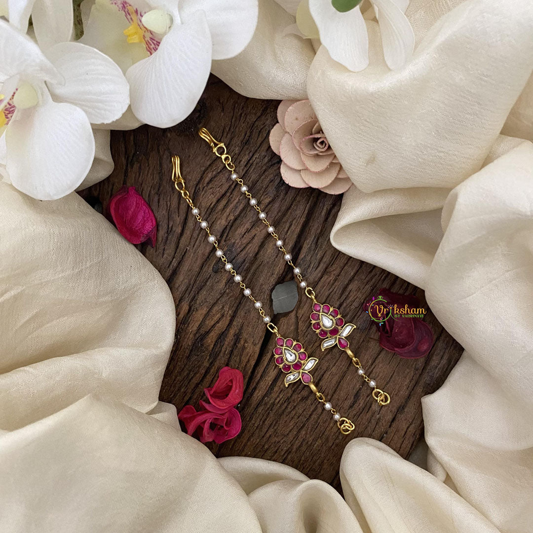 Indulge in luxury with Vriksham's Premium Designer Pearl Maatil. Each piece is carefully crafted with exquisite pearls for a sophisticated and exclusive touch. Elevate your style and make a statement with this premium designer piece.