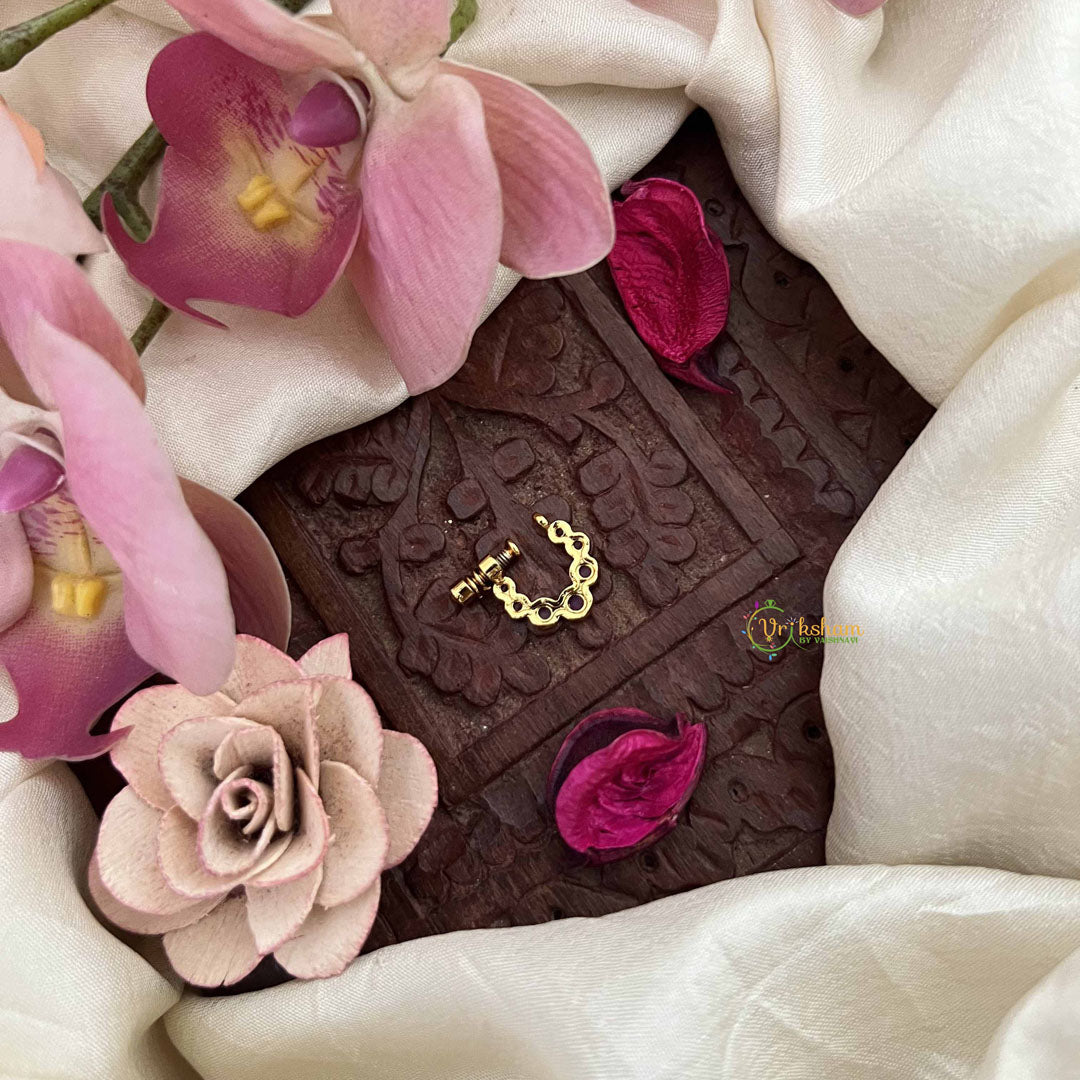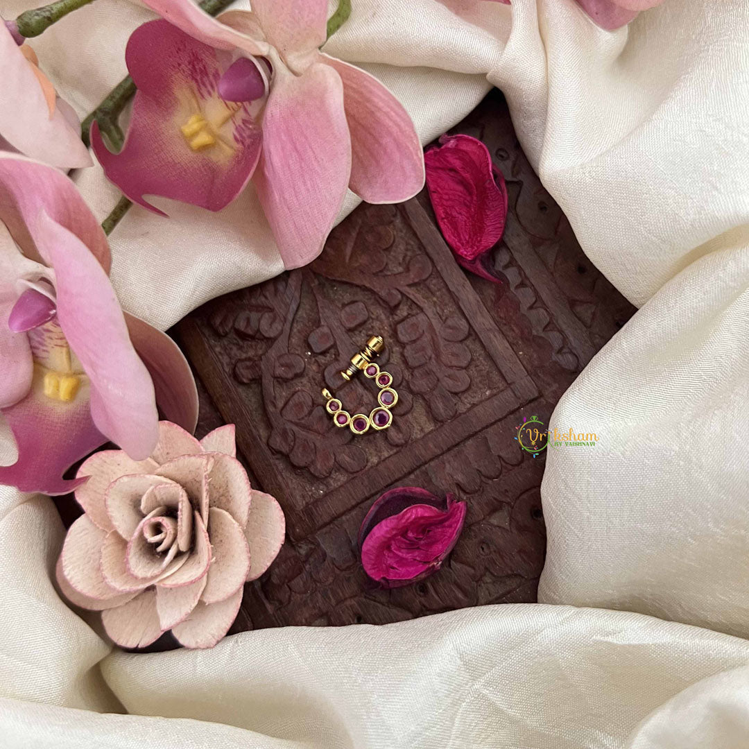 The Vriksham Premium Dot Style Press Naths in red features a refined dot motif that adds subtle texture and elegance. Designed for a secure and comfortable press fit, this nose pin brings a vibrant yet sophisticated touch, perfect for elevating both traditional and contemporary looks with understated grace.
