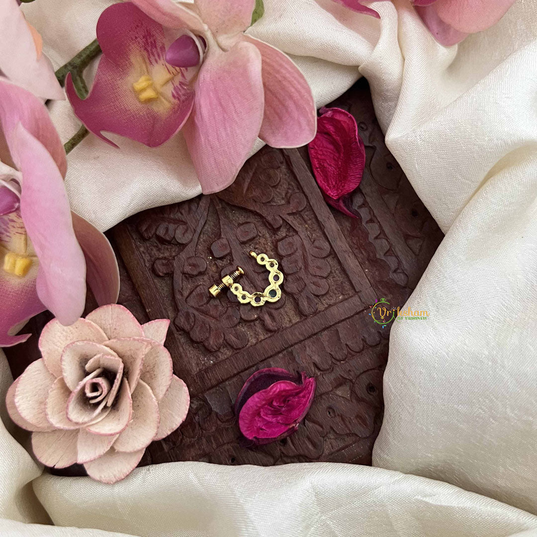 The Vriksham Premium Dot Style Press Naths in red, white, and green features a refined dot motif that adds subtle texture and elegance. Designed for a secure and comfortable press fit, this nose pin delivers a sophisticated blend of vibrant colors, perfect for elevating both traditional and contemporary looks with understated charm.