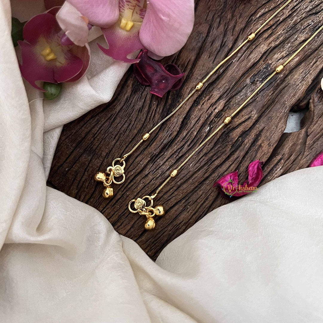 Discover refined beauty with Vriksham’s Premium Doted Gold Look Alike Anklets. Featuring a delicate dotted pattern, these anklets add a subtle texture and depth to the classic gold-inspired design. Perfect for enhancing your outfit with an elegant and timeless accessory that radiates sophistication.