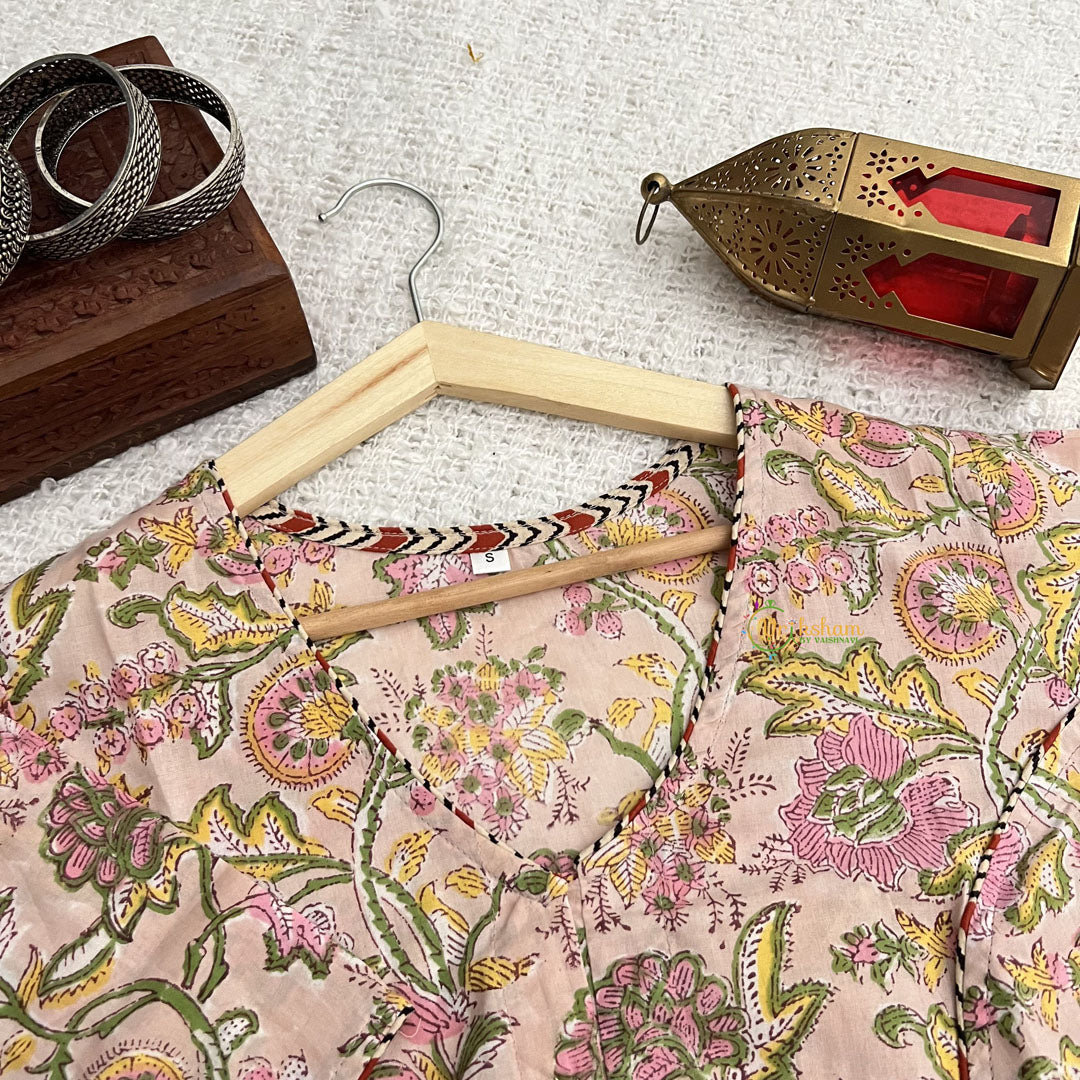 Colour: Light Pink Printed Readymade 100% Jaipuri Cotton Blouse.