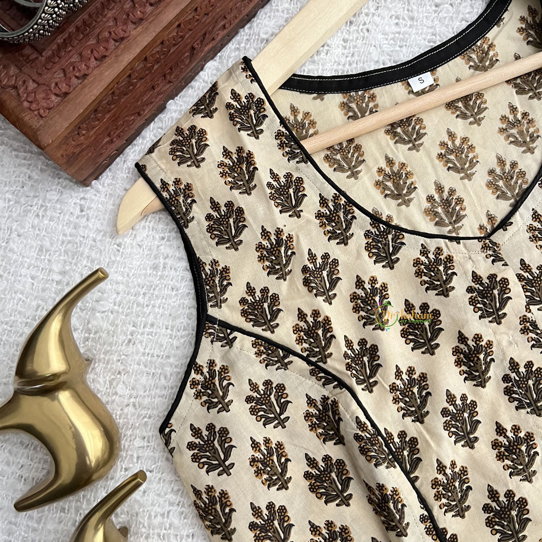 Blouse Design : Premium Kalamkari or ajrakh type Handblocked Print.