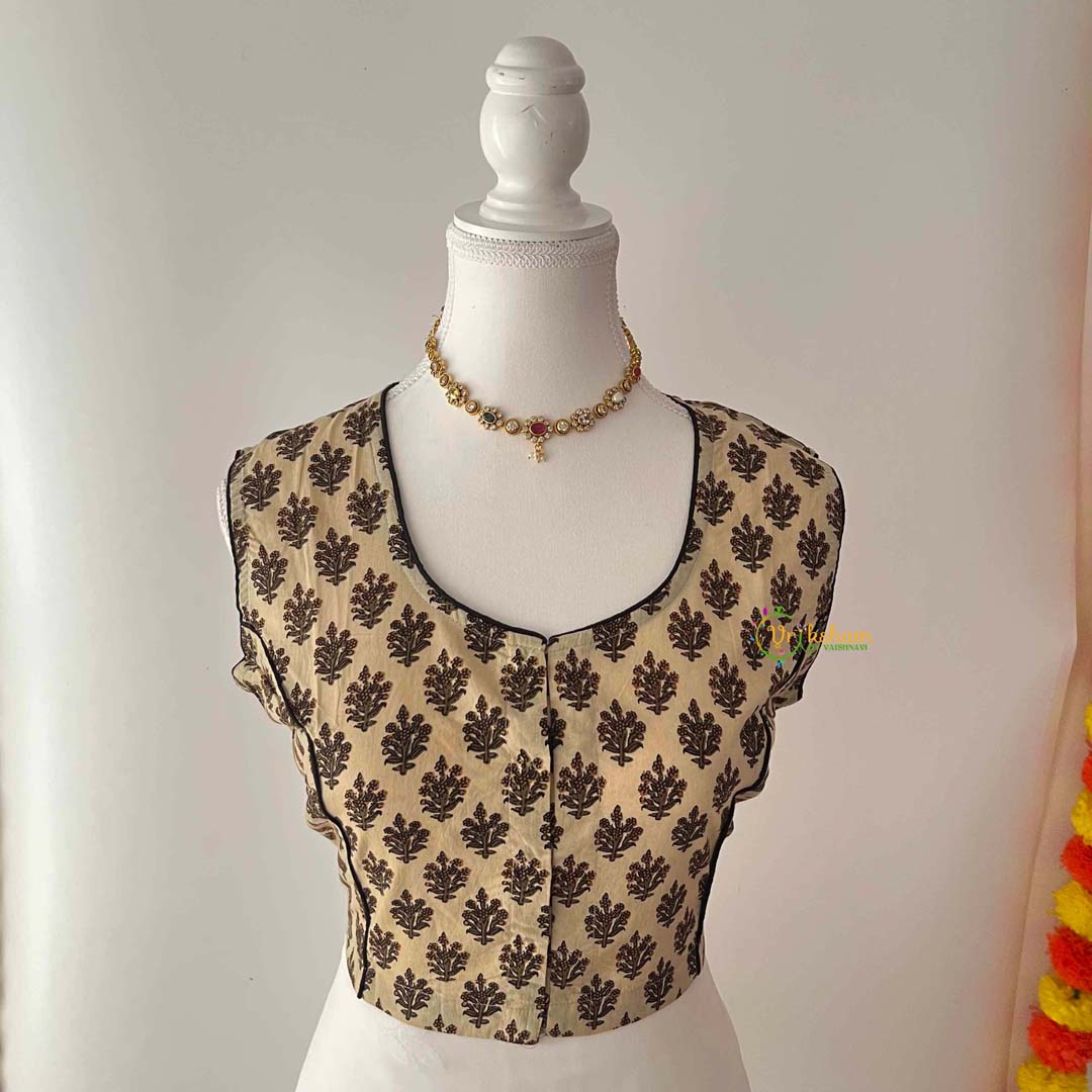 Colour: Skin Color Printed Readymade 100% Jaipuri Cotton Blouse.