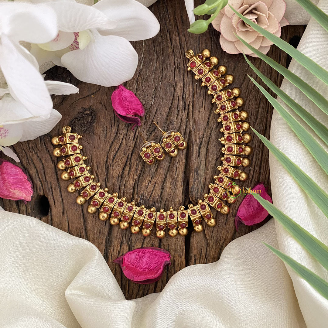 Elevate your style with our Vriksham Premium Gold Look Alike Choker in vibrant red. Made with a luxurious gold finish, this choker adds a touch of sophistication to any outfit. The perfect accessory for those seeking a premium, exclusive look without breaking the bank.