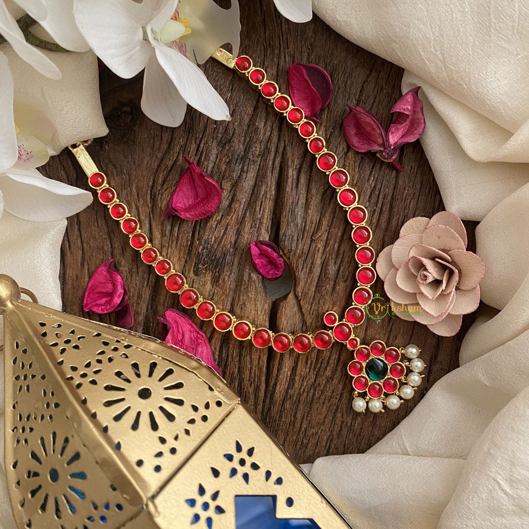 Introducing our Vriksham Premium Kemp Pendant Short Neckpiece-Pearl, crafted with exquisite pearls and a luxurious Kemp pendant. This elegant and exclusive neckpiece is the perfect addition to any outfit, adding a touch of sophistication and charm. Elevate your style with Vriksham.