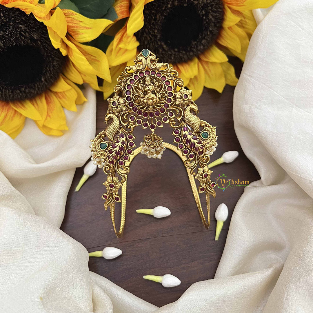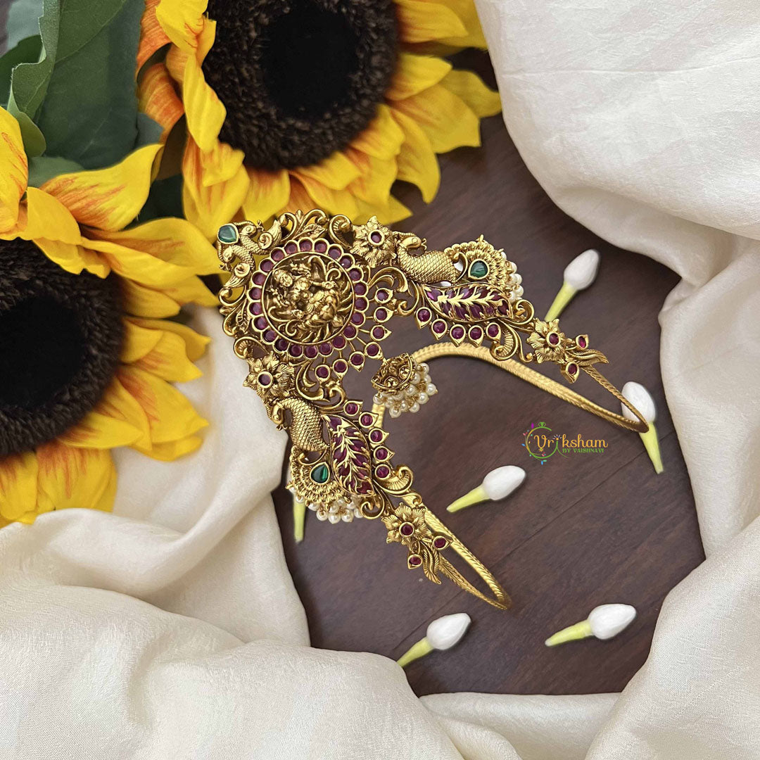 Indulge in luxurious spirituality with this Premium Lakshmi Vangi Temple Armlet, adorned with lustrous pearls that evoke serenity and timeless grace. The serene presence of Goddess Lakshmi is celebrated through exquisite temple craftsmanship that honors classical sanctuary jewelry traditions with refined elegance. Luminous pearl accents add a soft, ethereal dimension that complements the ornamental design beautifully, creating a harmonious interplay of light and sophistication. This premium piece serves as a powerful spiritual companion, invoking Lakshmi's blessings of abundance, prosperity, and divine grace in your daily life. The meticulous attention to detail and quality materials ensure this armlet radiates both devotional significance and refined aesthetic appeal. Perfect for those seeking to deepen their spiritual practice with luxury and authenticity, this sophisticated accessory seamlessly transitions from everyday wear to momentous religious celebrations. An invaluable treasure that strengthens your connection with sacred traditions while making a graceful statement of cultural pride and timeless elegance.