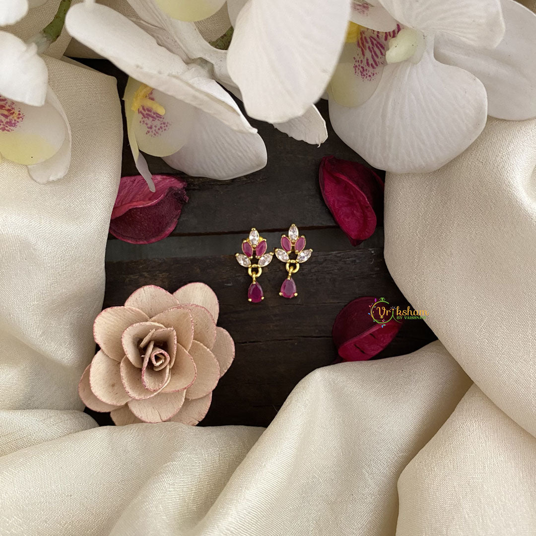 Vriksham Premium Leaf Studs-White & Pink-G16693