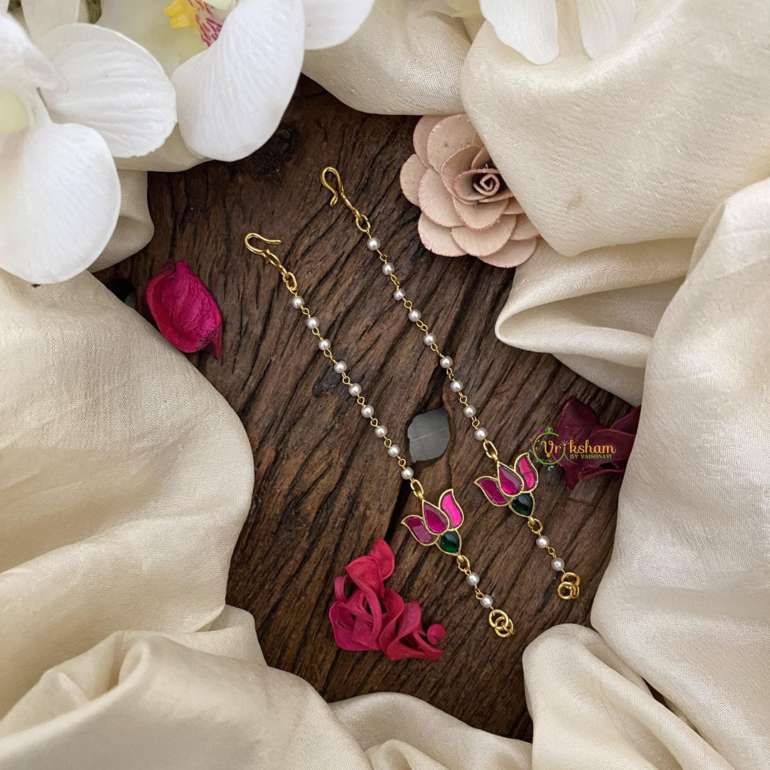 Indulge in luxury with Vriksham's Premium Lotus Pearl Maatil. Each piece is carefully crafted with exquisite pearls for a sophisticated and exclusive touch. Elevate your style and make a statement with this premium designer piece.