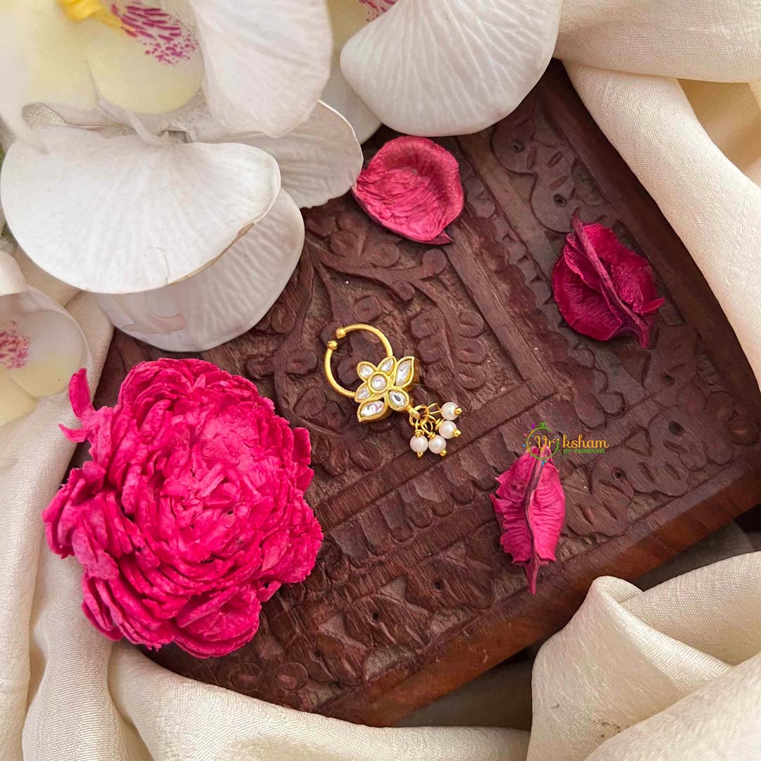 Golden Naths/Nose ring for Non - Pierced Nose. People who do not have piercing do not have to worry about not being able to wear naths. These nose rings helps people with non pierced nose also wear the same with a screw like holding. The moment you see the nath you will be able to understand how it will sit on the nose.