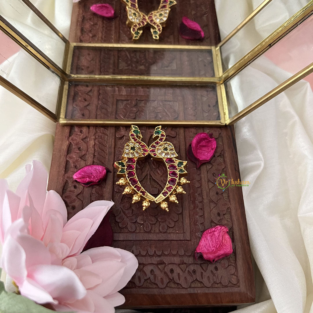 Indulge in the opulent elegance of our Vriksham Premium Peacock Cuff Style Earring. Crafted with intricate details, these earrings exude sophistication and artistry. From its peacock-inspired design to its cuff style, each feature adds a touch of luxury to your outfit. Elevate your style with these exquisite earrings.