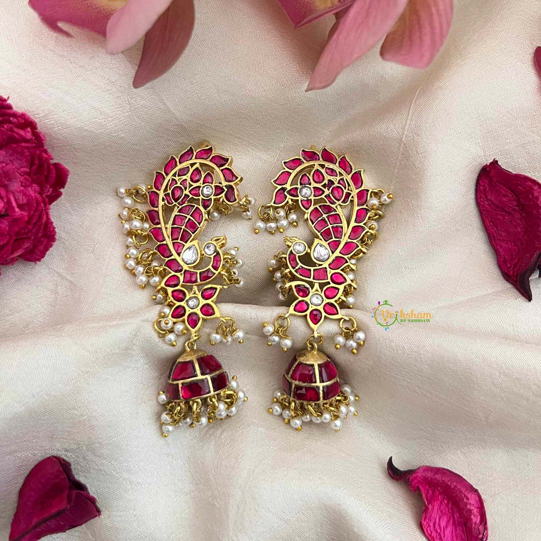 Elevate your jewelry collection with this Premium Peacock Kundan Jadau ear cuff, a radiant expression of heritage elegance. Featuring intricate kundan detailing and luminous pearls set against a striking red palette, this piece captures the majestic beauty of a peacock in exquisite detail. The delicate jhumka design creates a mesmerizing sway, infusing grace and movement into every wear. Crafted for the discerning individual who values authentic artisanal jewelry, this ear cuff transforms any occasion into a celebration of timeless sophistication and cultural artistry.