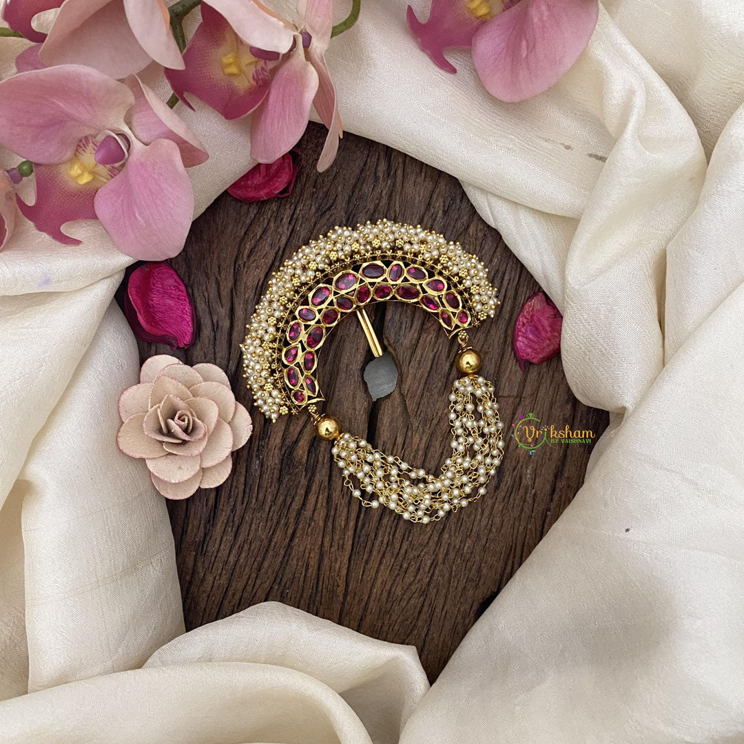 Indulge in luxury with Vriksham's Premium Pearls Layer Red Single Jada Billai. Enhance your style with this exquisite piece, crafted with the finest pearls and adorned with a rich red . Elevate your look and make a statement with this exclusive accessory.