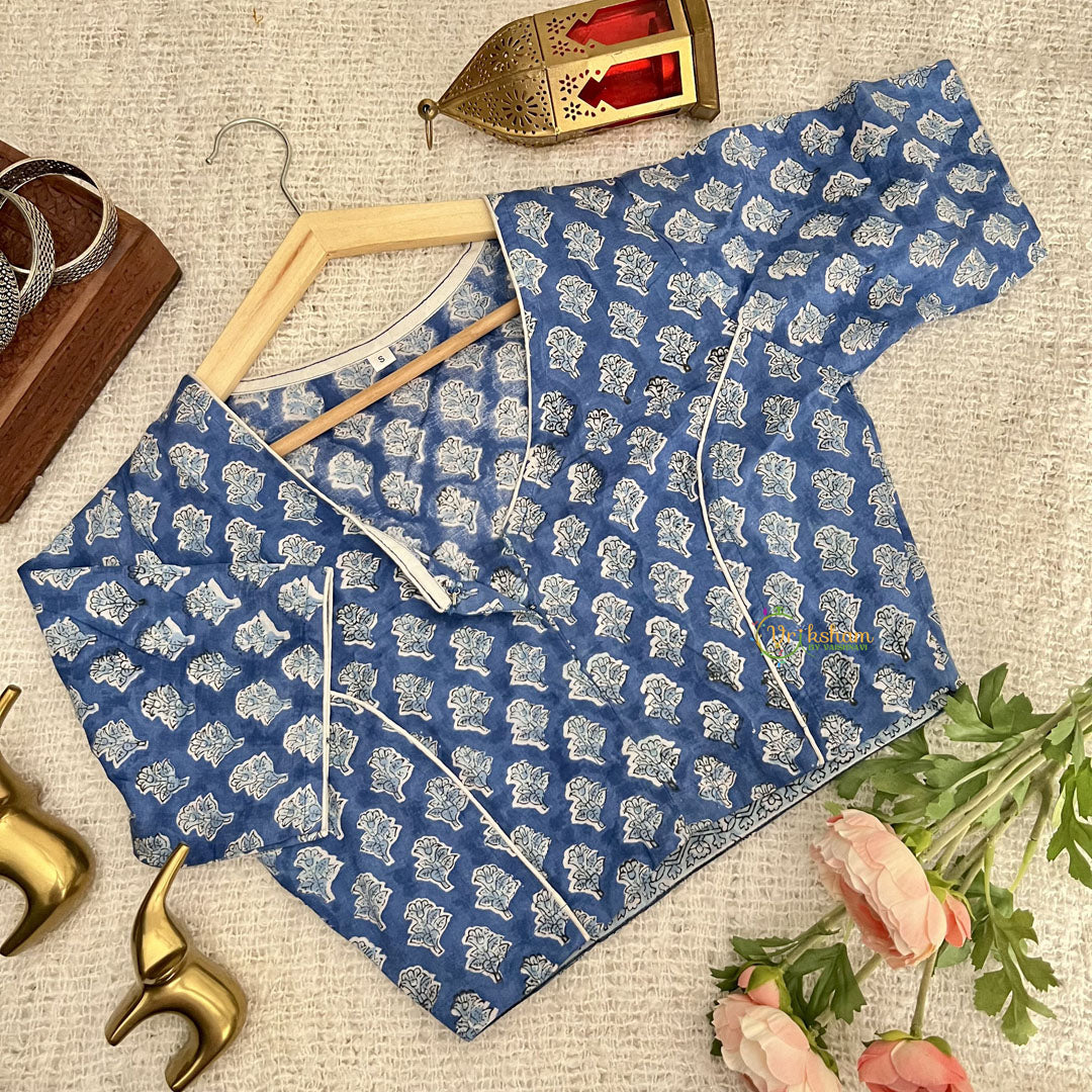 Colour: Light Blue Printed Readymade 100% Jaipuri Cotton Blouse.