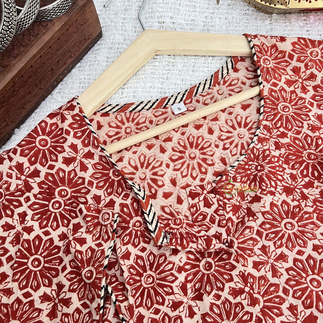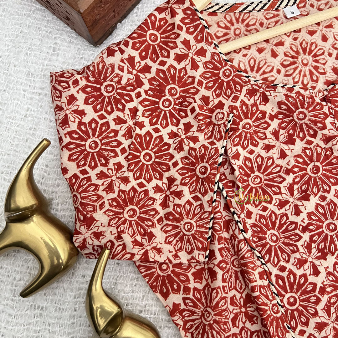 Colour: Red Printed Readymade 100% Jaipuri Cotton Blouse.