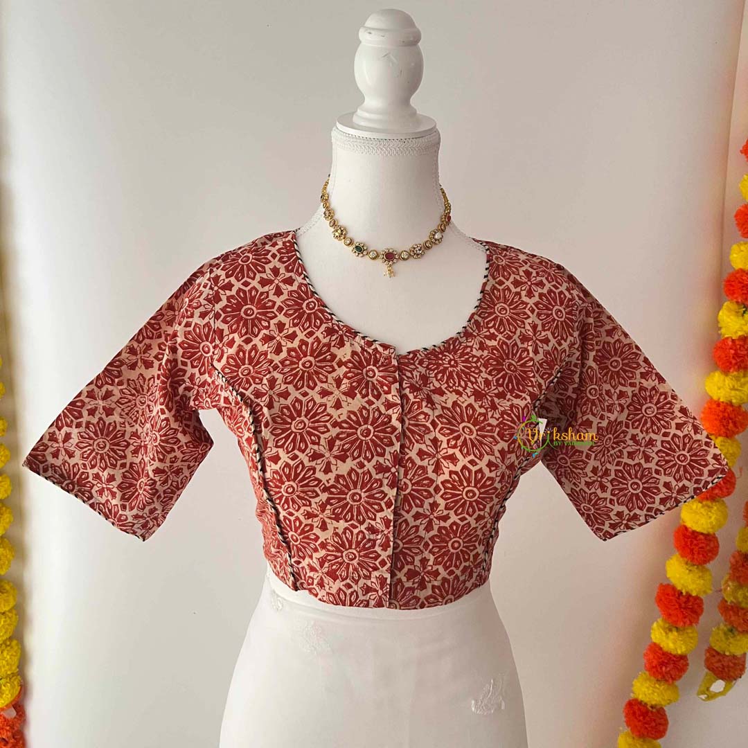 Blouse Design : Premium Kalamkari or ajrakh type Handblocked Print