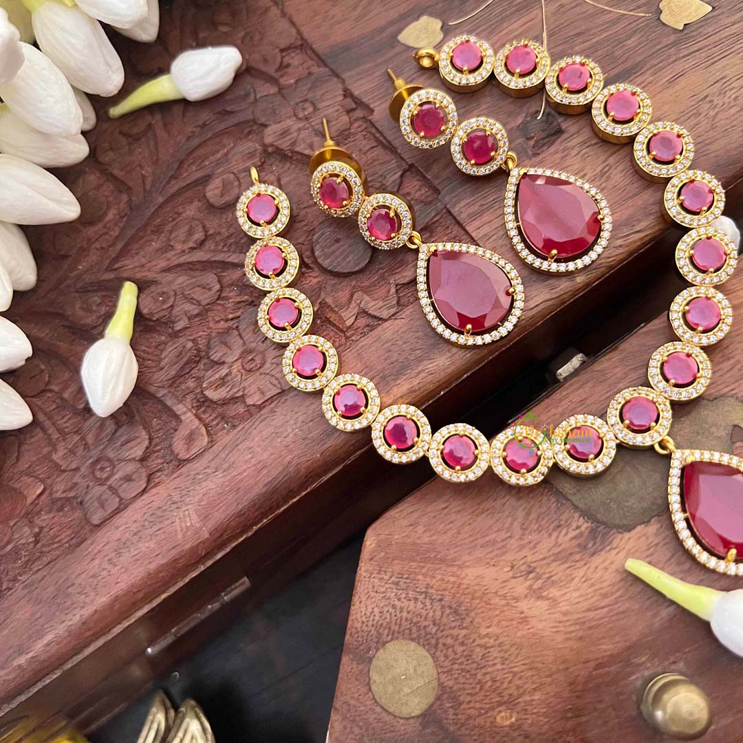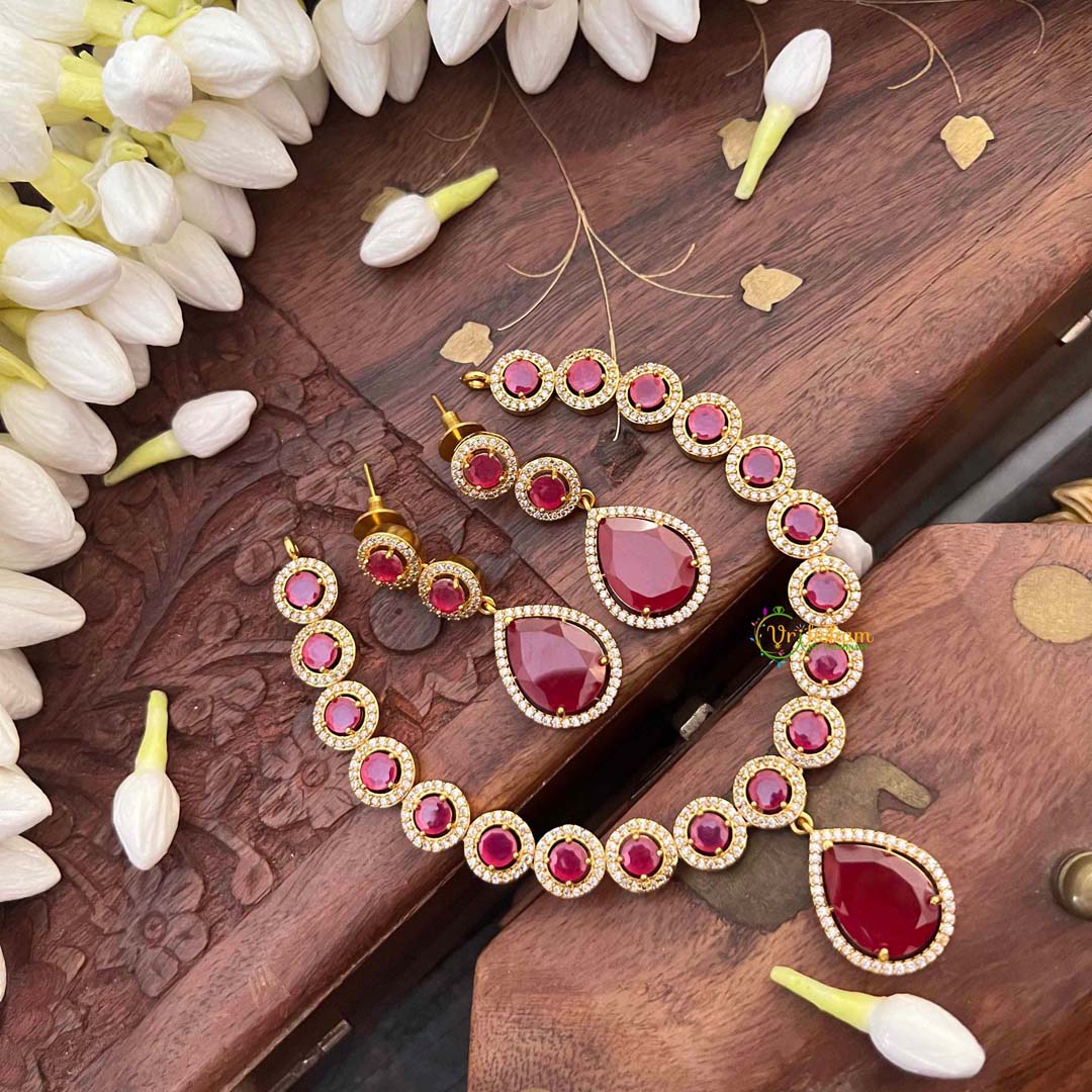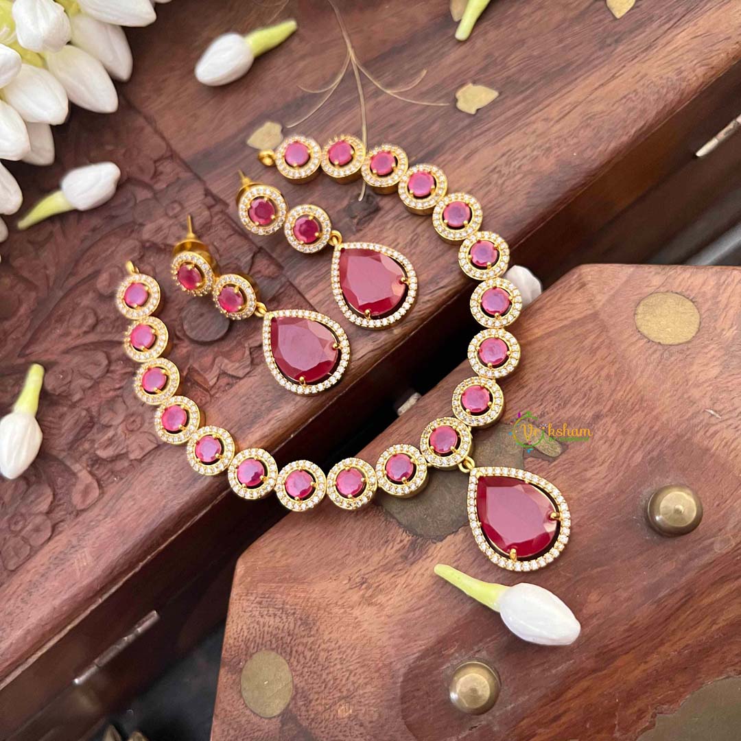Elevate your everyday elegance with this exquisite round CZ stone pendant neckpiece. Featuring a lustrous teardrop design suspended from a delicate chain, this sophisticated piece captures light beautifully with premium cubic zirconia stones that rival diamond brilliance. The rich red hue adds a bold yet refined touch to any ensemble, from casual daywear to evening occasions. Crafted with meticulous attention to detail, this short neckpiece offers the perfect balance of statement appeal and wearable sophistication. An investment in timeless style that complements both traditional and contemporary wardrobes.