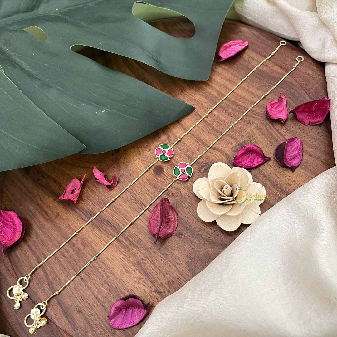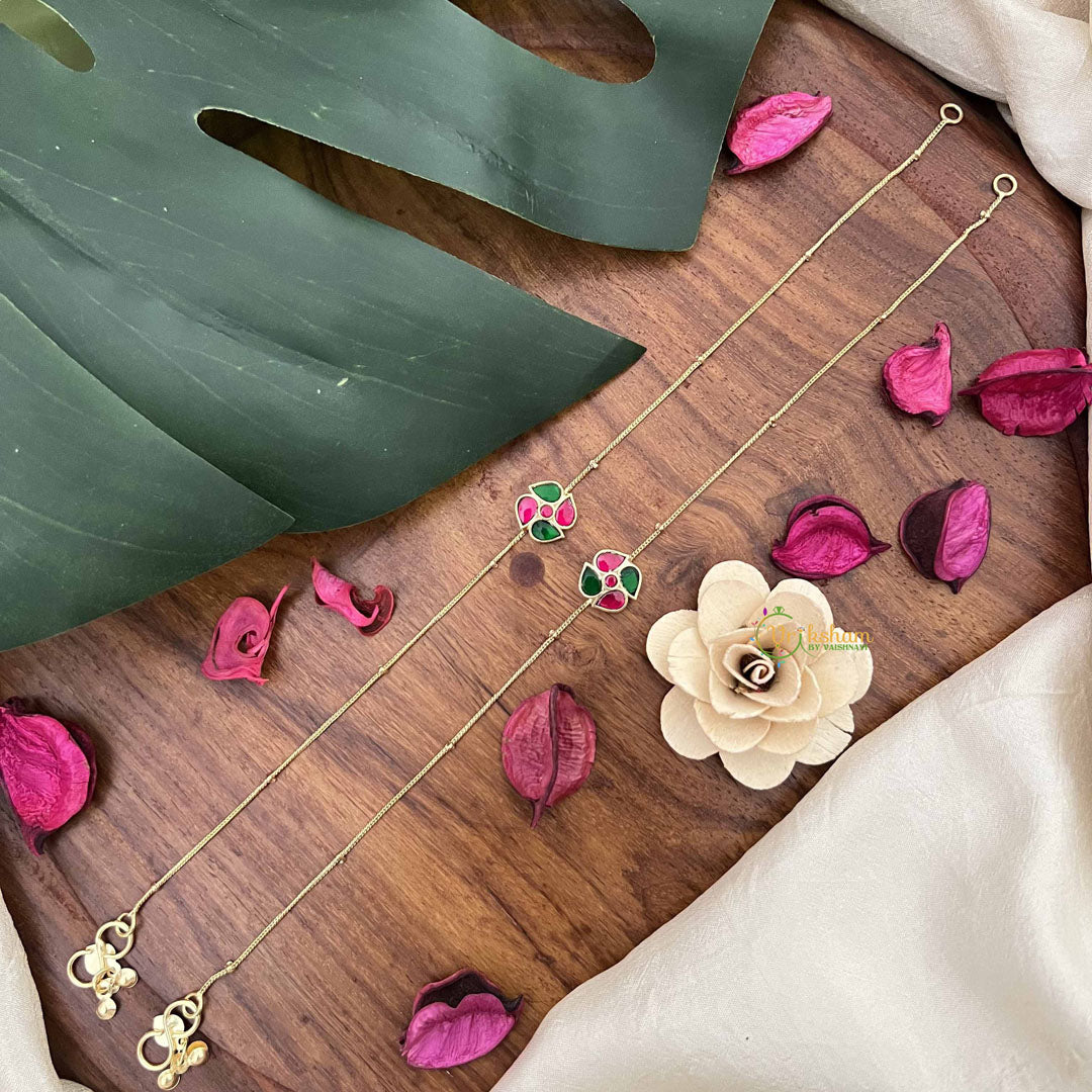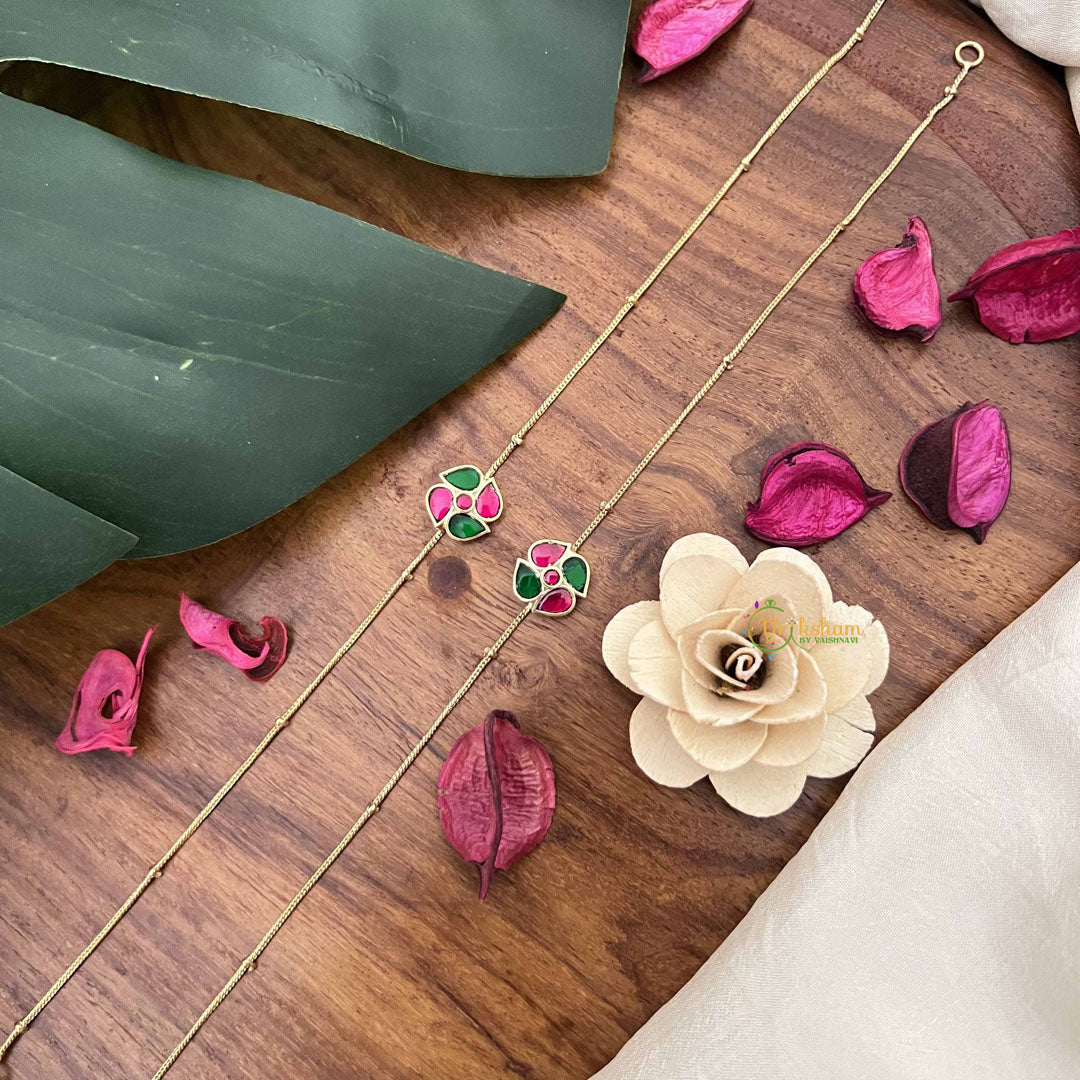 Elevate your ankle jewelry with these Premium Stone Pendant Anklets, featuring a harmonious blend of red and green stones in a refined design. Each piece combines lustrous gemstones with elegant pendant detailing, creating a balanced aesthetic that captures light beautifully. The thoughtful composition ensures versatility, allowing these anklets to enhance both festive celebrations and refined everyday occasions. Crafted with premium-quality materials and superior artisanal skill, they represent a commitment to excellence and timeless style. An investment piece for those who appreciate jewelry that transcends trends and embodies enduring sophistication.
