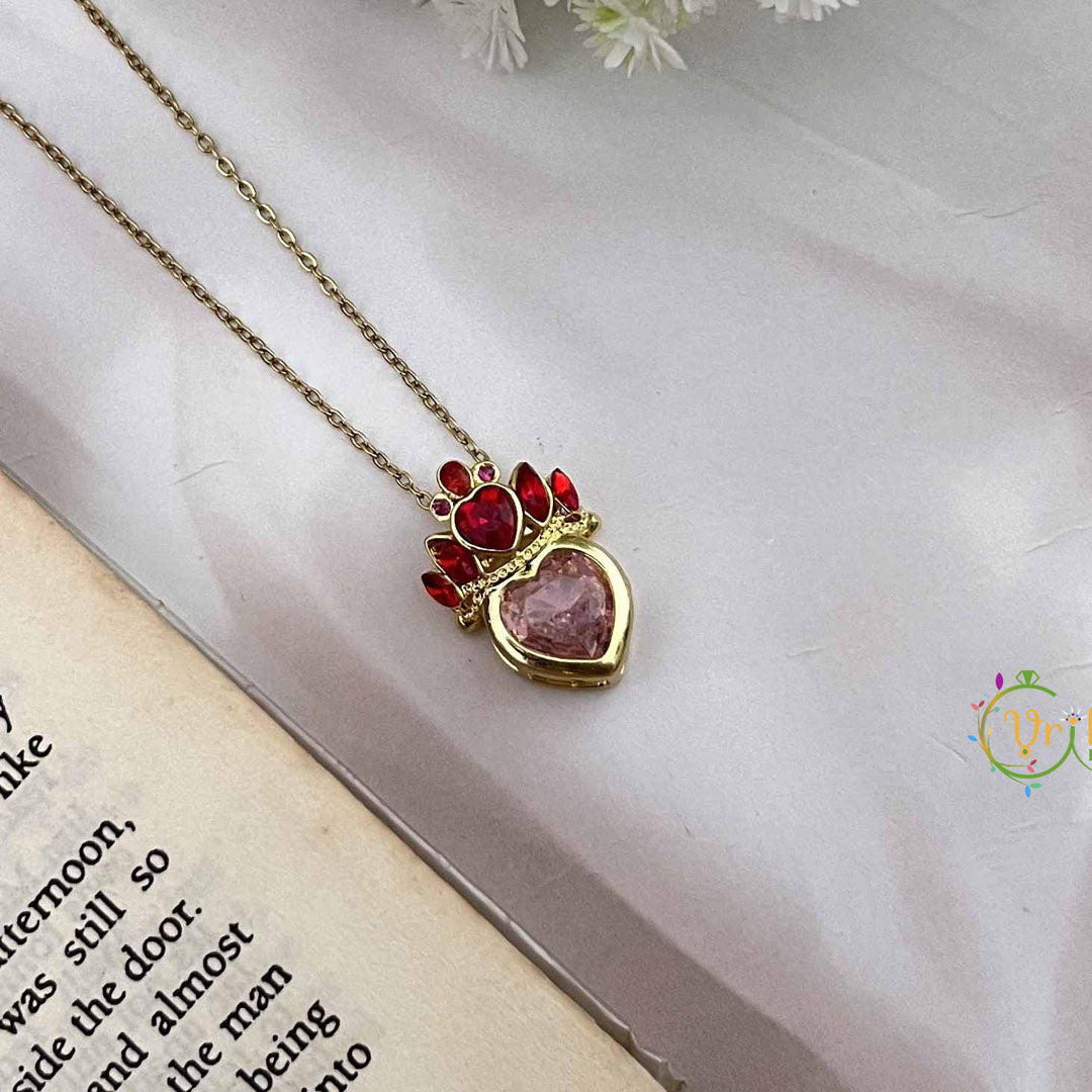 Command attention with this Queen Heart pendant necklace, featuring striking pink and red stone embellishments. Set in gold-alike metal with advanced anti-tarnish technology, this piece resists dulling to maintain its radiant allure. The heart silhouette, enriched with passionate gemstone hues, radiates warmth and confidence with every wear. Ideal for those seeking bold sophistication, this necklace seamlessly transitions from evening affairs to refined daily styling. A captivating accessory that celebrates strength, elegance, and timeless femininity.