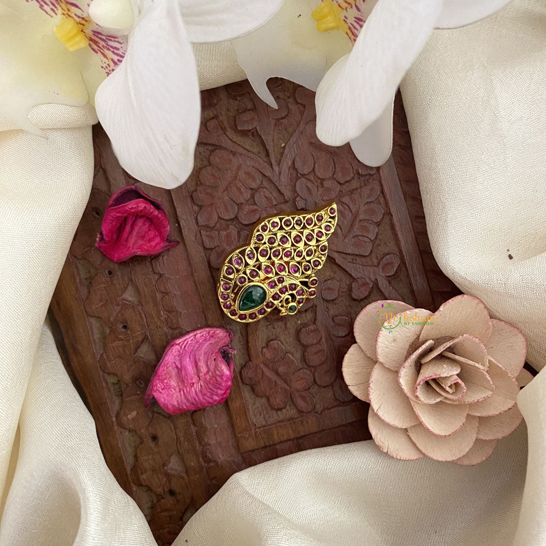 Elevate your saree game with our exquisite Vriksham Red Green Peacock Saree Pin, adorned with sparkling AD stones. A symbol of beauty and grace, this pin adds an elegant touch to your traditional ensemble. Make a statement with this luxurious and tasteful accessory.