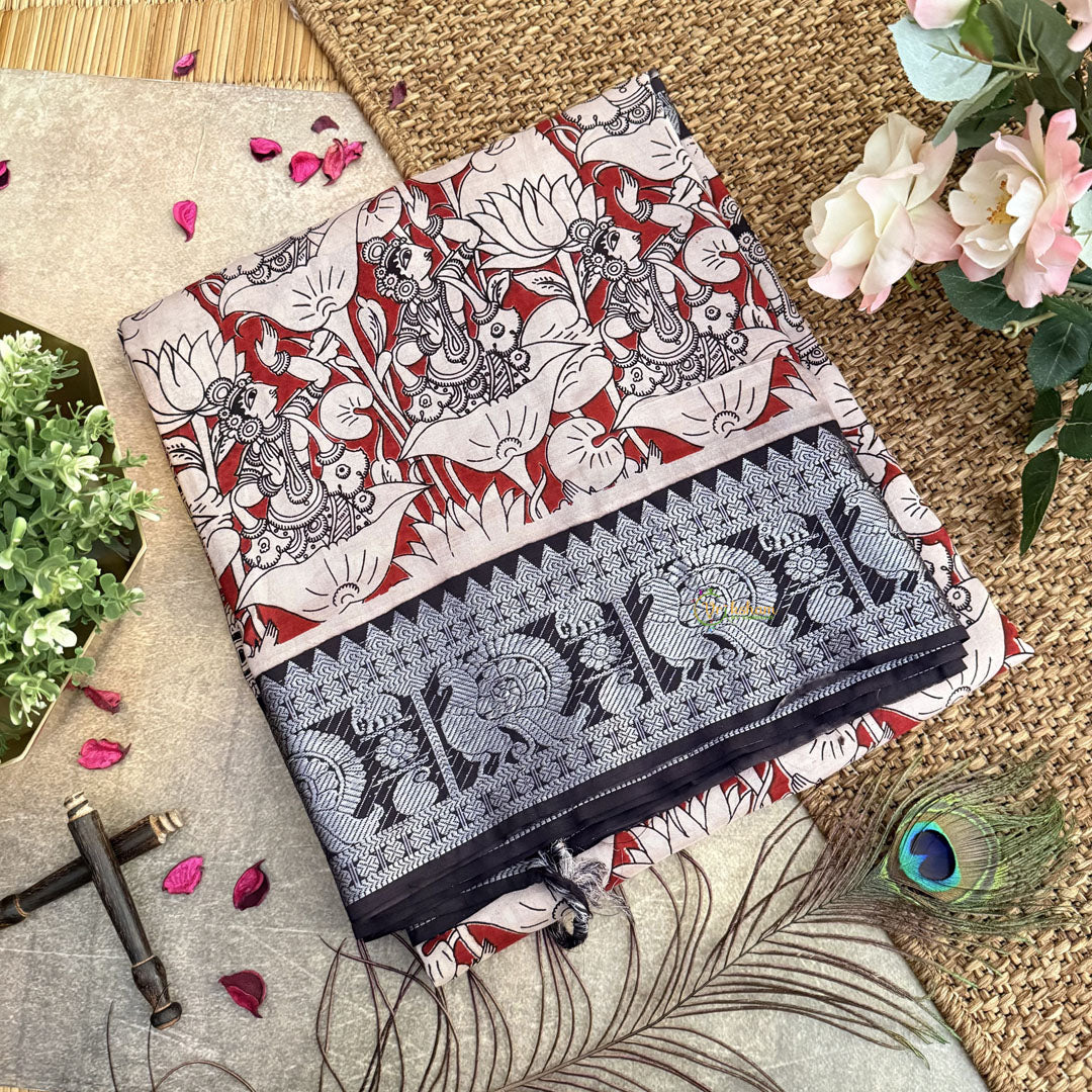 Material: Kalamkari Chennur Silk Saree With Black Border