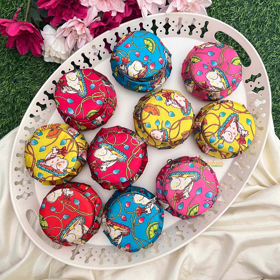 Present your cherished bangles with timeless elegance using this exquisite return gift bangle matki box set. Each of the six beautifully crafted boxes measures 9.5 inches, offering ample space to showcase your finest designer pieces. The traditional matki design combines cultural authenticity with refined aesthetics, making it an ideal choice for weddings, celebrations, and special occasions. Perfect for gifting or personal collection display, these boxes elevate the presentation of your jewelry while ensuring each bangle receives the dignified treatment it deserves.