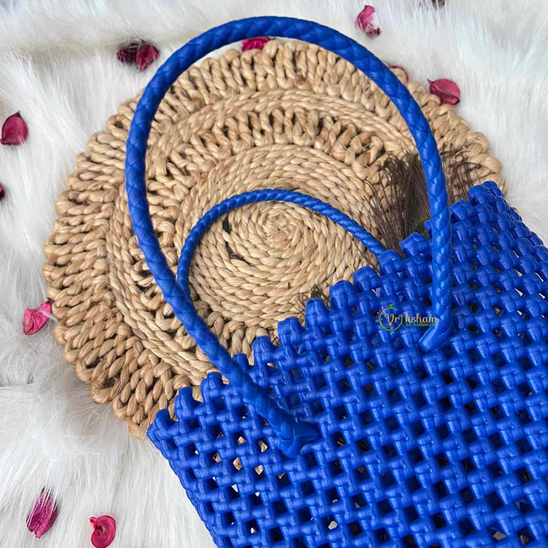 Embrace timeless elegance with this refined hand-woven wire tote in a sophisticated royal blue retro checkerboard design. The deep, luxurious hue evokes classic sophistication while the intricate woven pattern adds textural interest and visual dimension. Crafted through traditional hand-weaving techniques, this market bag showcases exceptional artisanal quality and structural integrity that withstands everyday use. The spacious interior provides generous capacity for your essentials, from market purchases to travel necessities, all while maintaining a polished aesthetic. Perfect for the discerning individual who values understated elegance and authentic craftsmanship, this tote transcends seasonal trends to become a cherished staple in any refined wardrobe, offering both practical utility and enduring style.
