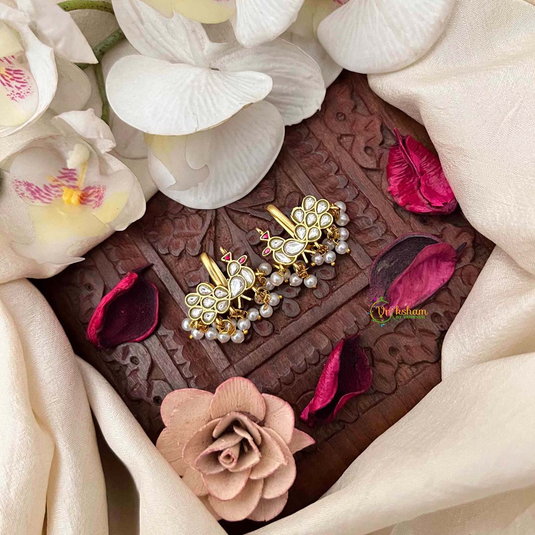 Embrace timeless elegance with this exquisite Royal Peacock Style Pearl Drop Kundan Jadau Bugadi. Meticulously crafted using traditional kundan and jadau techniques, this piece features intricate peacock motifs adorned with lustrous pearls and radiant gemstones. The delicate pearl drops add graceful movement and refined sophistication to your ensemble. Perfect for weddings, festivals, and special occasions, this heirloom-quality jewelry celebrates the artistry of Indian craftsmanship. A stunning statement piece that seamlessly blends heritage aesthetics with contemporary elegance.
