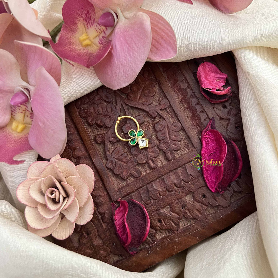 Vriksham Royal Polki Gold-Toned Kundan Jadau With Green White Septum Ring-J3913