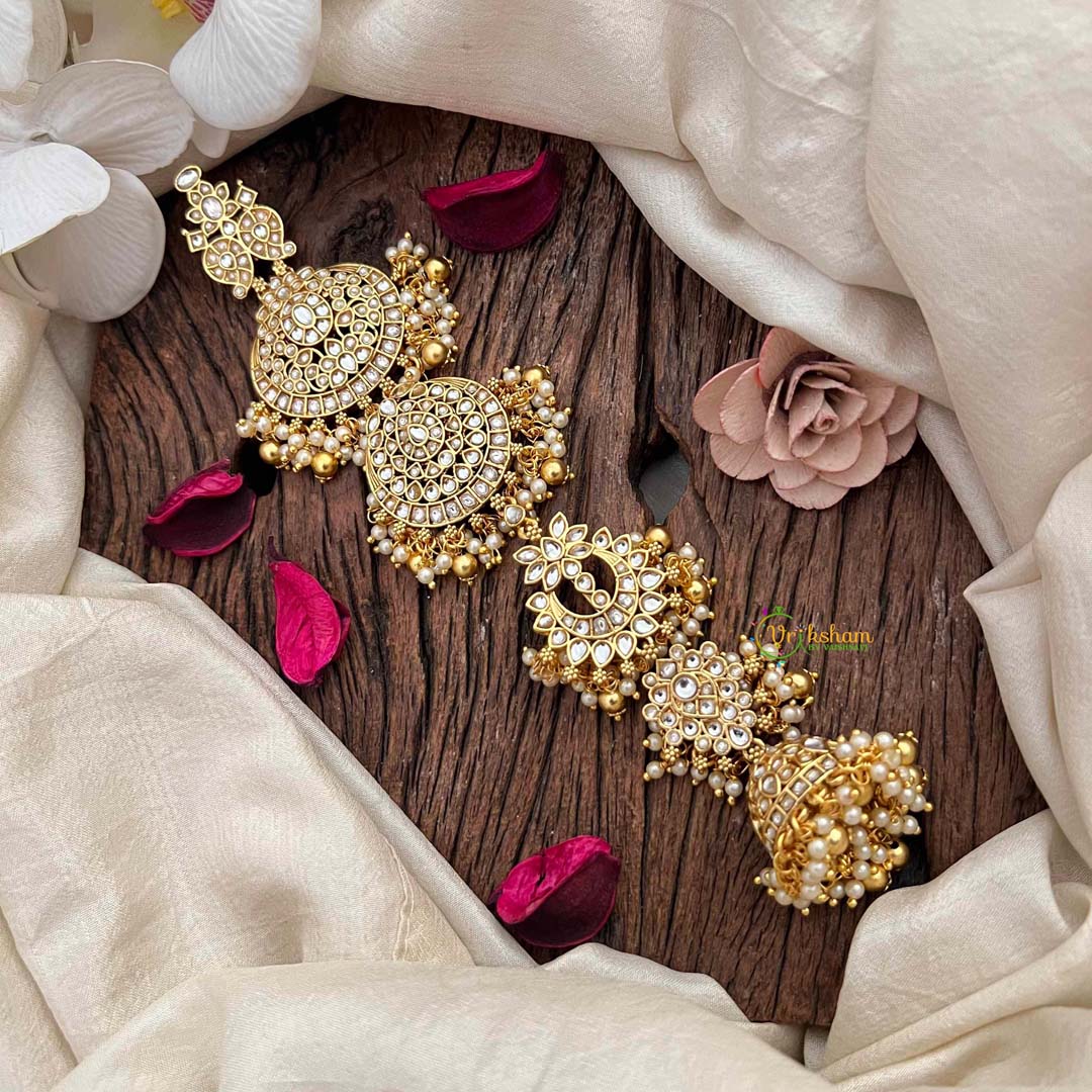 Command attention with this regal Jadai Billai, a showstopping bridal piece inspired by South Indian heritage. Featuring five intricately crafted segments adorned with elaborate circular medallions, this accessory radiates opulence and grandeur. Embellished with lustrous red pearls that cascade gracefully, it creates a stunning focal point for any bridal ensemble. Each medallion showcases meticulous detailing, reflecting generations of jewelry-making mastery. Designed for the bride who embraces bold elegance and cultural pride, this statement piece transforms your wedding day into an unforgettable celebration of tradition and sophistication.