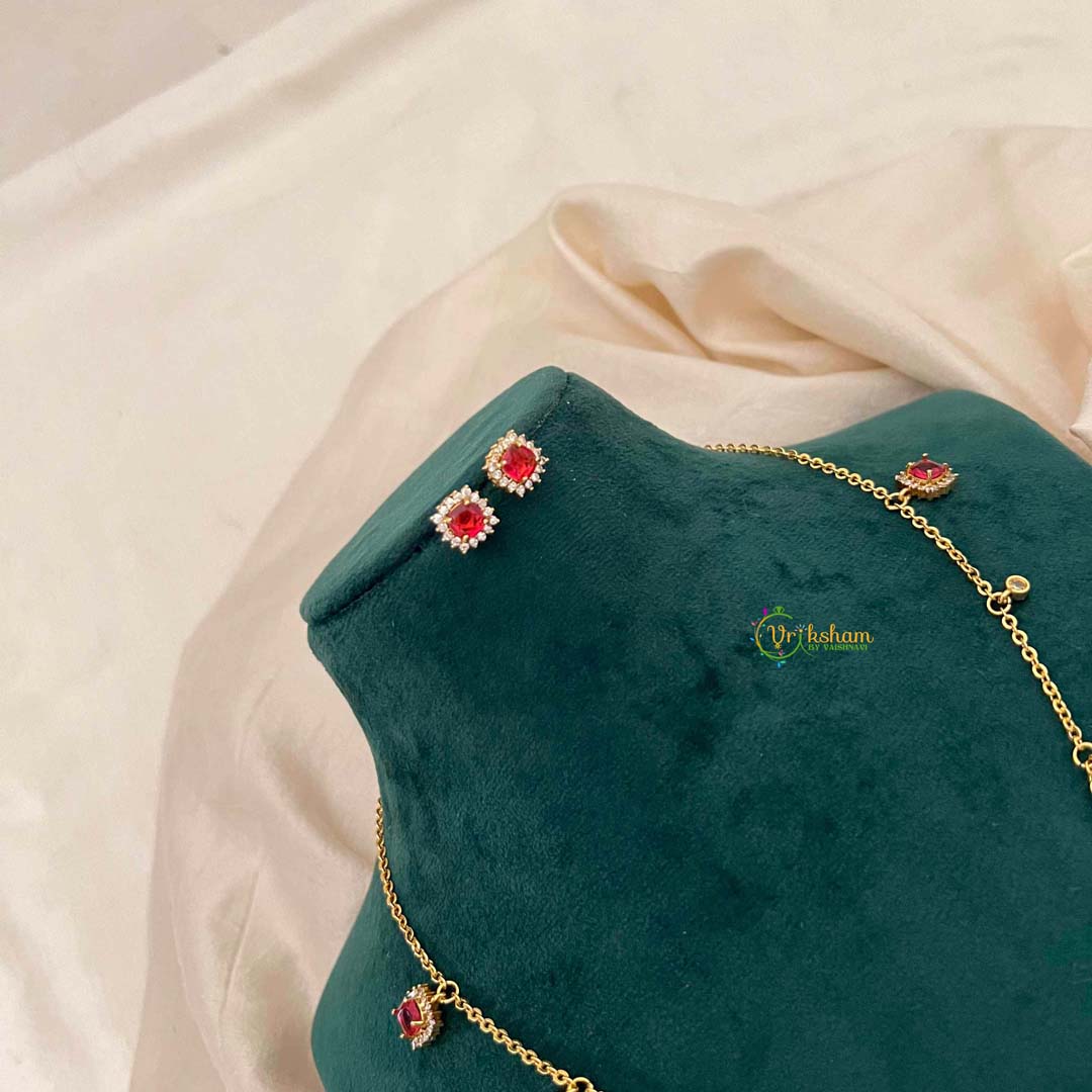 Elevate your everyday elegance with this refined necklace set, featuring a striking ruby red gemstone paired with brilliant cubic zirconia accents. The delicate charm pendant catches light beautifully, while matching stud earrings complete the coordinated look. Crafted with meticulous attention to detail, this versatile set transitions seamlessly from office to evening occasions. The lightweight design ensures all-day comfort, making it an essential addition to your jewelry collection. Perfect for gifting or treating yourself to timeless sophistication.