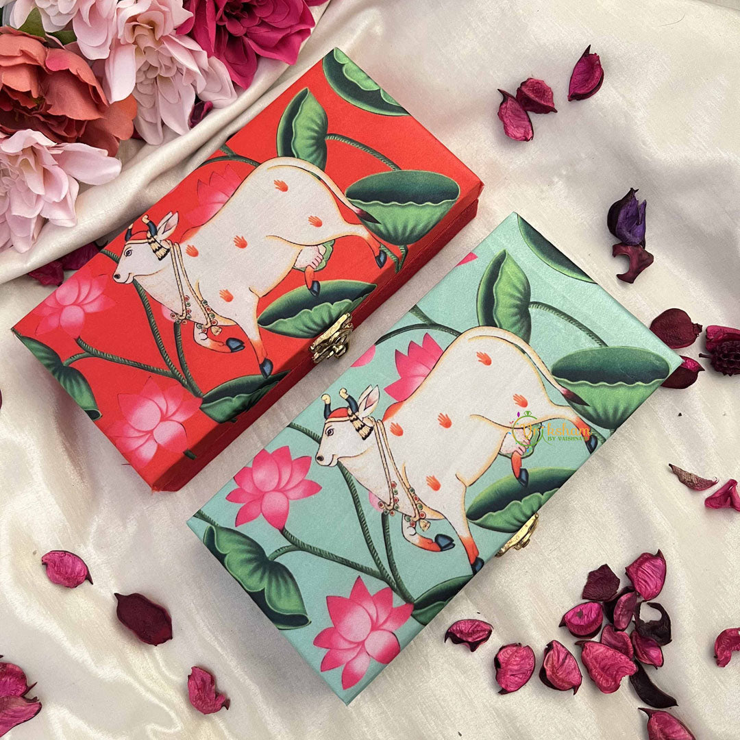 Embrace spiritual symbolism with this distinguished Sacred Cow & Lotus Print Diya Set, a pair of thoughtfully designed diyas that honor revered cultural motifs. Each piece showcases intricate sacred cow and lotus imagery, rendered with meticulous artistry to capture the essence of devotion and purity. Available in assorted colors, these diyas complement diverse interior palettes while maintaining an air of refined sophistication. Crafted with attention to detail, they serve as both functional vessels for oil lamps and meaningful decorative accents for prayer spaces, meditation rooms, or festive celebrations. Presented in an elegant decorative gift box, this set makes a profound gift for those seeking to infuse their homes with spiritual grace and cultural reverence.