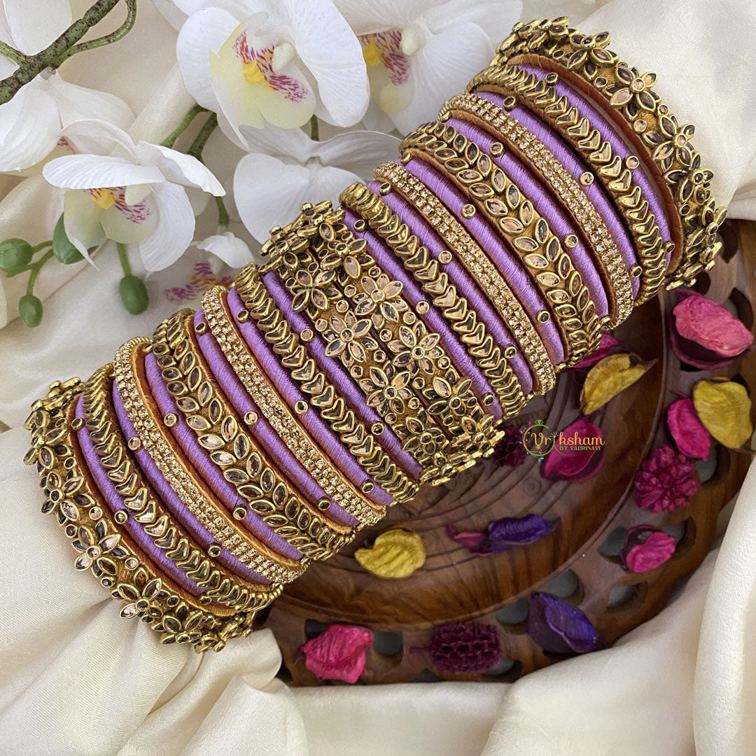 Vriksham Silk Thread Gold Kundan Bridal Bangle Set-Lavender-G16226