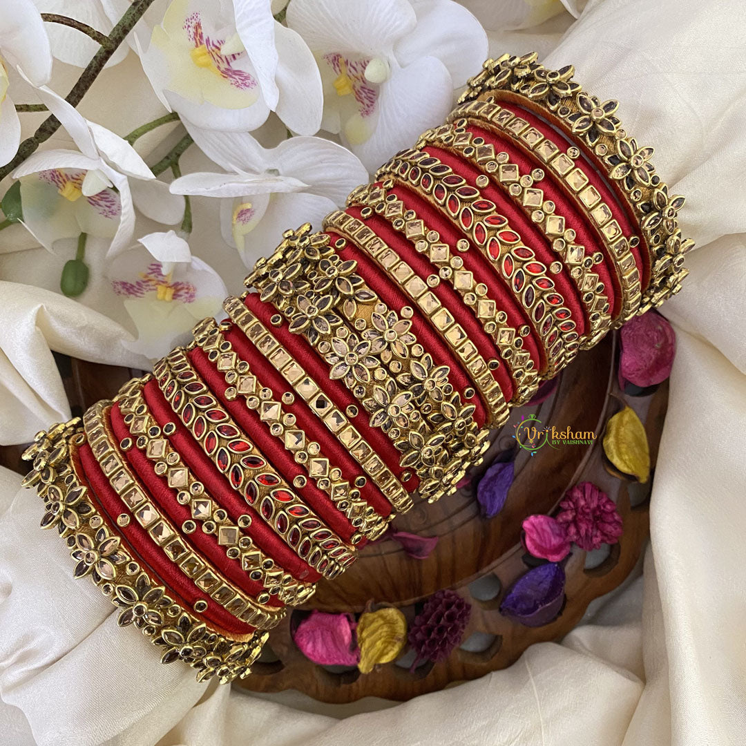 Vriksham Silk Thread Kundan Bridal Bangle Set-Red & Gold-G16241