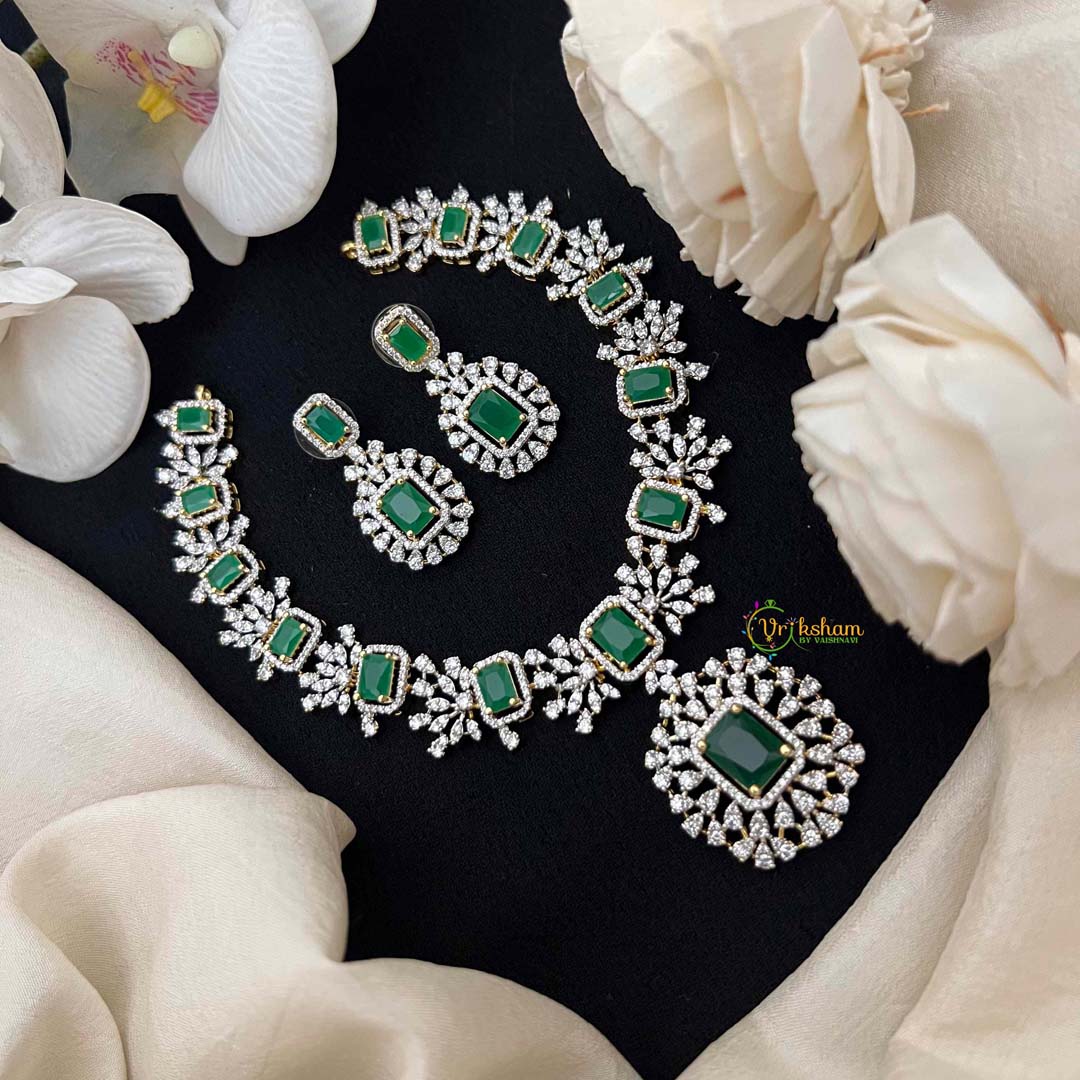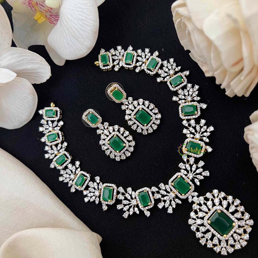 Discover understated elegance with this refined short neckpiece, featuring a pristine emerald-cut crystal as its centerpiece, encircled by a luminous halo pendant that amplifies its brilliance. A complementary rectangular drop pendant adds geometric interest and balanced proportion to the design. The clean lines and minimalist aesthetic appeal to those who appreciate modern sophistication with timeless appeal. Perfect for both everyday elegance and special occasions, this piece transitions seamlessly across seasons and settings. The interplay of geometric shapes and crystalline sparkle creates a captivating focal point that catches light beautifully, ensuring you radiate quiet confidence and refined grace with every wear.