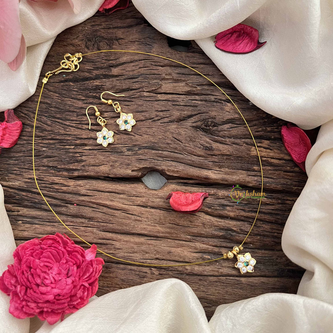 Vriksham Simple Floral Pendant Invisible Chain-White Green-G20602